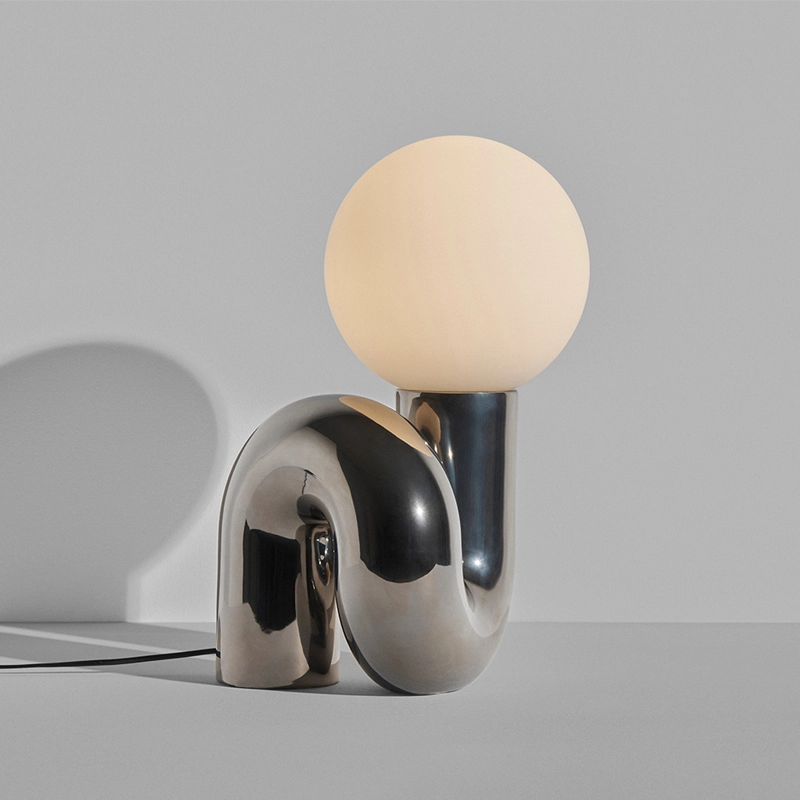 The Néotenic lamp is made by artisan ceramists in Portugal. The body requires a complex mould to achieve this rounded shape, particularly for the large model, which requires a six-part mould, meticulous hand-finishing of the ceramic before firing, drying against gravity and painting, either glossy and smooth or matt and powdered, applied in a single gesture. A true feat of craftsmanship and technique, defying the laws of physics.
