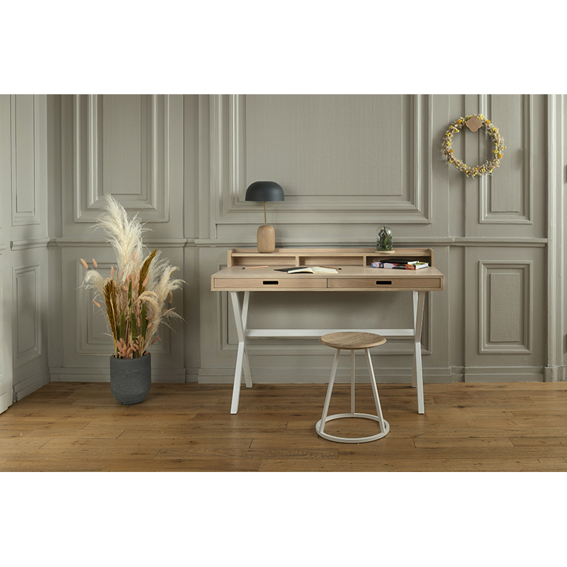 The Nina table lamp was designed by Tristan Lohner for Harto. Simple yet elegant, it embodies softness and refinement. It has a rounded shade and a slender base. The Nina lamp is made from wood and metal. Highly functional, Nina uses her shape, tenderness and character to flatter and sculpt the shadows. It comes in a range of colours to suit all tastes: white, slate grey and pale pink. For example, the Nina table lamp presented by Harto is suitable for any space such as the living room, bedroom or office.