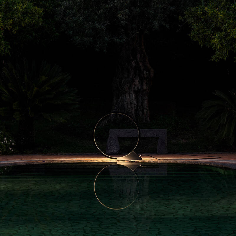 "O" is a table lamp designed from aluminium and silicone, which allows for the lightness of the design. Indeed thanks to its low weight