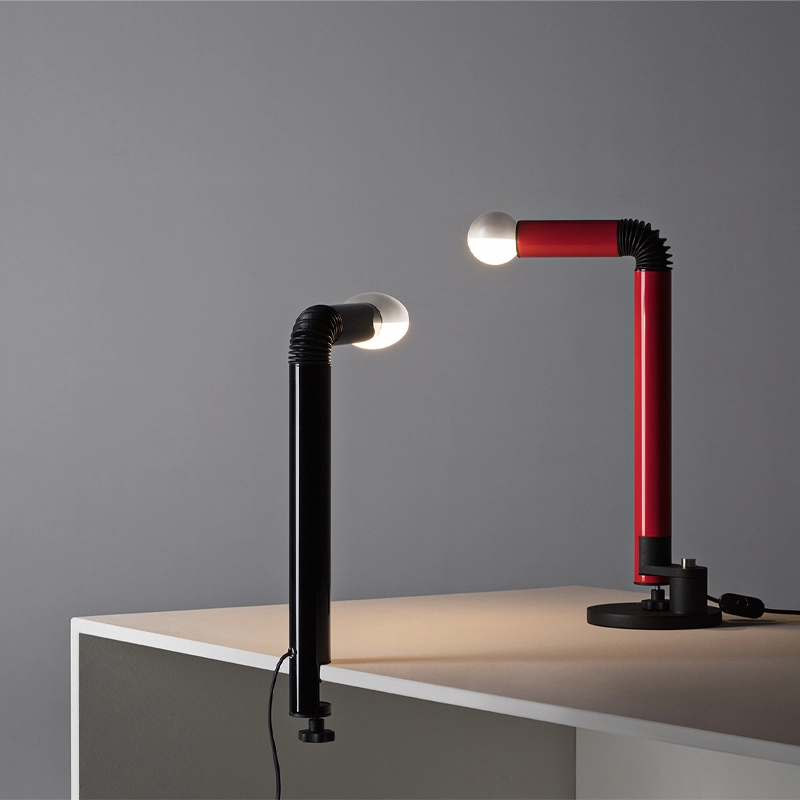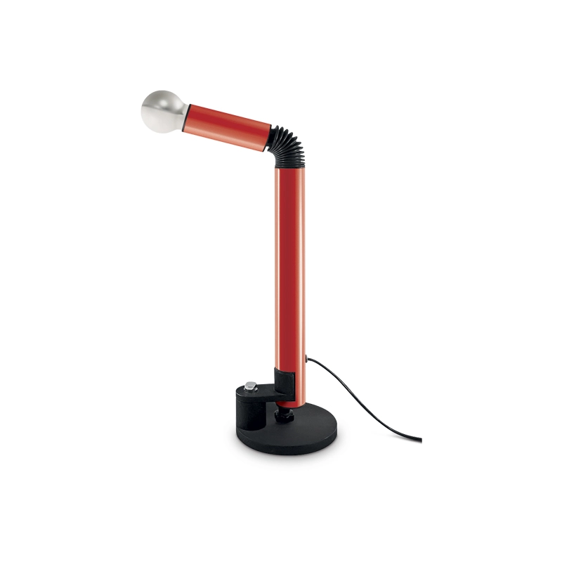 The Periscopio collection of luminaires edited by Stilnovo was designed in the midst of the "space age". The soft rubber covering the joint is reminiscent of the joints in astronauts' suits. The arm articulation and rotation system allows Periscopio to be adjusted to virtually any position. The special LED source, half of which is covered with a silver surface, prevents glare. The Periscopio luminaires are available as table lamps and in two floor lamp sizes.