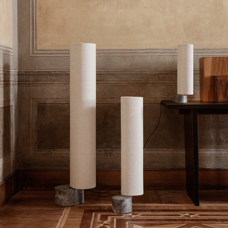 Published by Gubi, Unbound is a collection of lighting that is both ethereal and functional, a pared-down version of the traditional Japanese paper lantern that shakes up conventions with its playful asymmetry. Unbound is the result of design studio Space Copenhagen's desire to create a practical yet poetic lamp with a sculptural character, but without being imposing. Taking the ship's lantern as its starting point, Space Copenhagen set out to simplify the typology to its purest expression. The marble base plays the role of an anchor, embodying immobility and weight. It contrasts with the textile shade, which seems to float above the base. Swivelling through 360°, the shade can be perfectly aligned with the marble base or completely off-centre, creating a sculptural asymmetry. Designed to create a soft, zen-like ambience, the UnboundGubi lamp swivels easily in an almost poetic way. The full-height LEDs and the textile shade create a warm, diffused light in any space. Unbound is available as a table lamp and as a floor lamp, available in two heights.