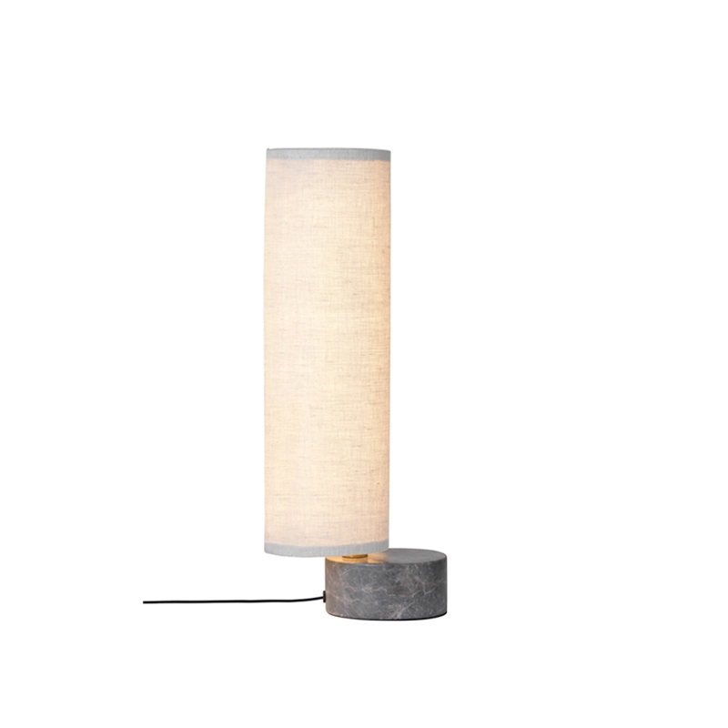 marbre gris, abat-jout lin blanc ou toile naturelle