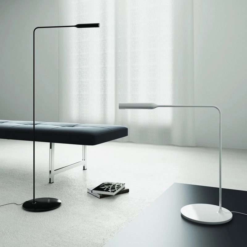 The Flo lighting collection was created by the Foster + Partners team for Lumina. This collection is characterised by a minimalist design using state-of-the-art technology. The table lamp version for a bedside table, the desk lamp and the floor lamp all diffuse a soft and subtle light that is obtained not only by the lamp's refined shape, but also by the absence of external moving parts such as coils and springs. The Flo collection is made of aluminium and steel with a matte black or white finish; the switch button is located on the diffuser with three positions: on, half on and off. The LED source is of very high quality and guaranteed by Lumina.