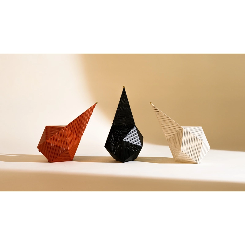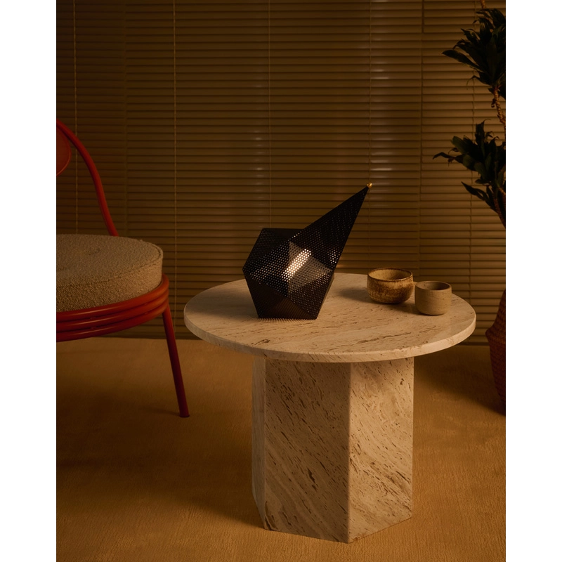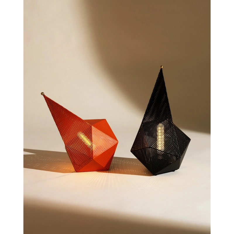 Originally designed in 1954, Bagdad is an original lamp in perforated metal, the preferred material of its designer, Mathieu Matégot. A multi-faceted cubist construction with a comet-shaped tail, the sculptural design of the Bagdad lamp has proved timeless thanks to its unique and playful character. Reissued by Gubi, the new version of Bagdad cuts the size in half and adds an extra element of versatility by making it portable It features a three-level dimmer switch. The Gubi Bagdad portable lamp moves easily around any room bringing it warm accent light.
