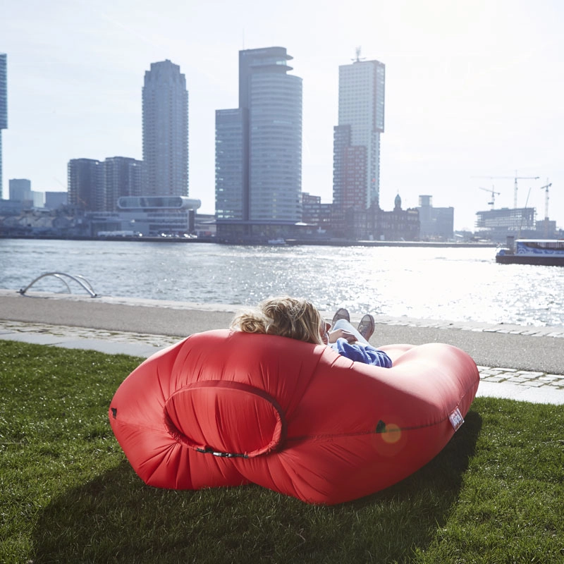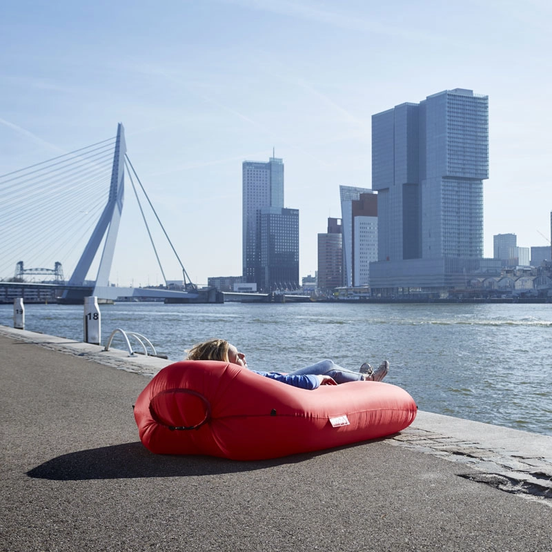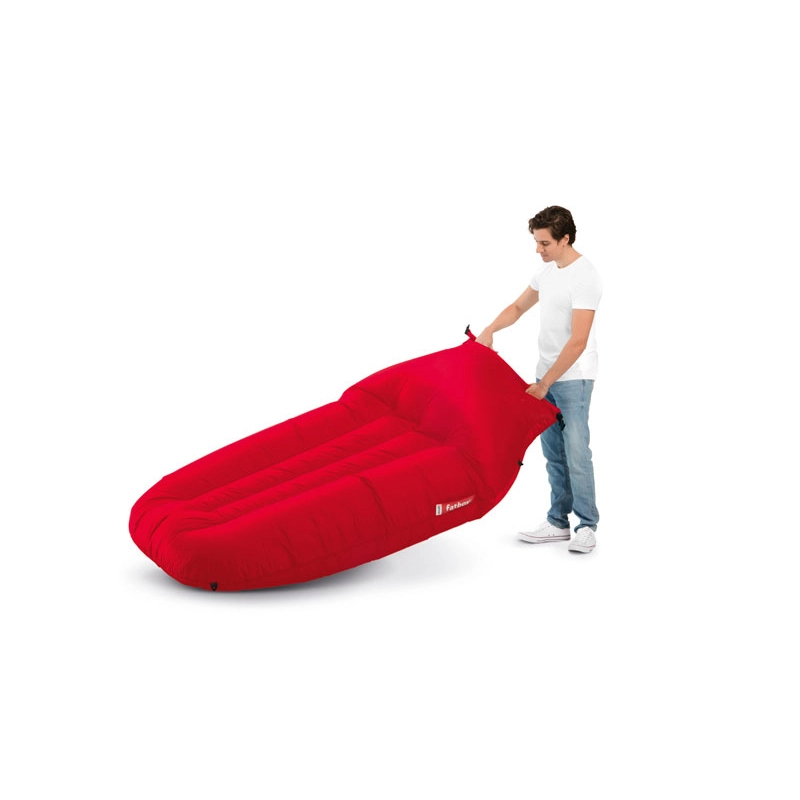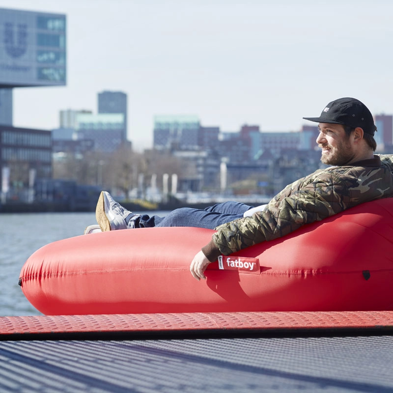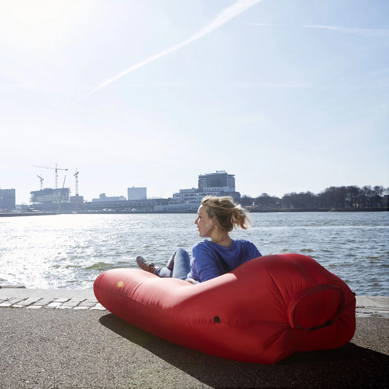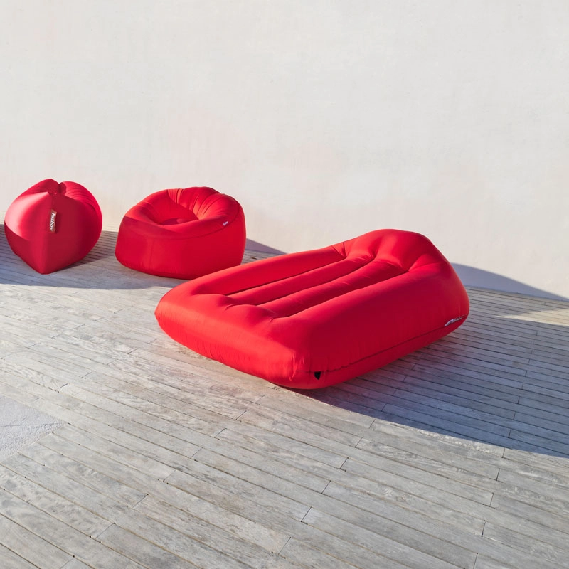 Fatboy proposes an ingenious large footstool that inflates and deflates in the blink of an eye wherever you want, and is just as easy to transport, stowed away in its small, lightweight bag. Made of sturdy ripstop Nylon, this luxurious lounger is durable and perfect for a day at the beach or as an extra bed. After using this comfortable ally, simply fold it up and store it in its small bag, ready to set off on new adventures.