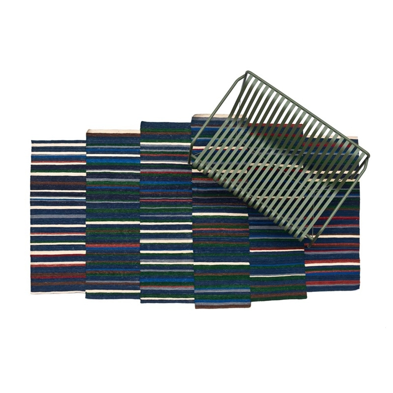 Following the Losanges rug, the Bouroullec brothers have once again collaborated with Nanimarquina to create Lattice, a kilim rug that is both balanced and irregular. Hand-woven in Afghan wool, it has a simple pattern, reproduced in a very rhythmic way. Lattice is available in two harmonious shades: a light, off-white and blue version, and a dark, multicoloured version. Unlike most rugs where the pattern is arranged in a rectangle, Lattice stands out by its shape, defined by the arrangement of the pattern. This rug by the Bouroullec brothers creates a very graphic visual impact in the living room.