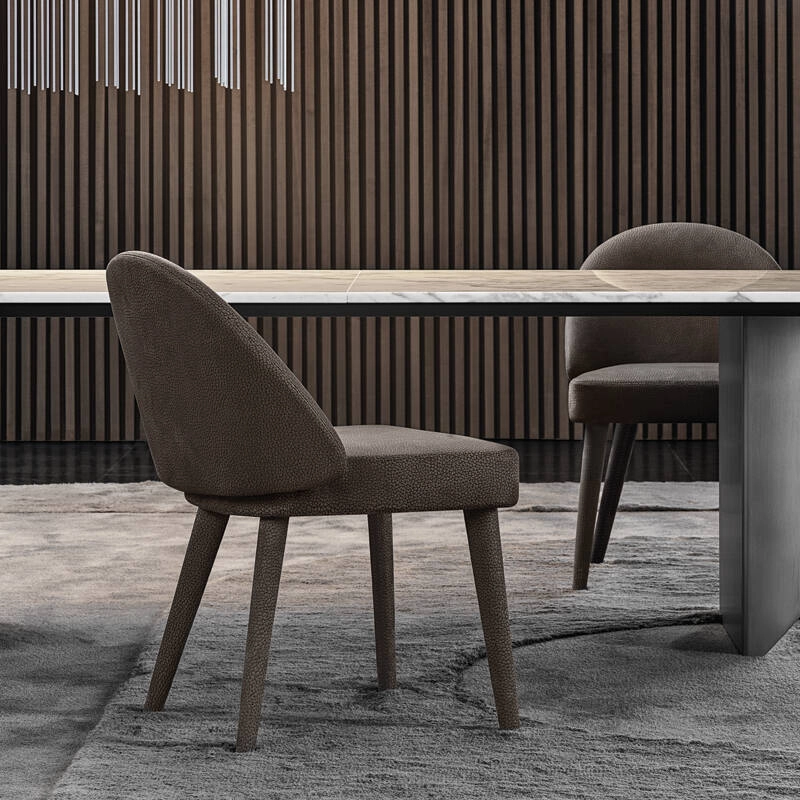 Designed by Rodolfo Dordoni for Minotti, the Lawson seating collection stands out for its shapes with fluid lines, the balance of its soft volumes and its play of materials. The small armchair and the chair are equipped with legs in Moka-coloured ash or covered with leather. Naturally elegant, Lawson is ideal for both residential interiors and the hospitality sector. Each product is available in multiple combinations of materials and colours.
