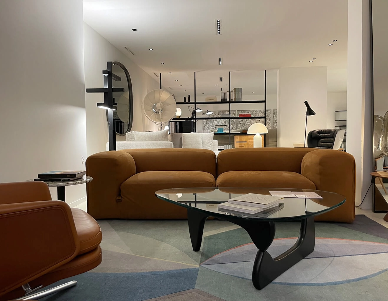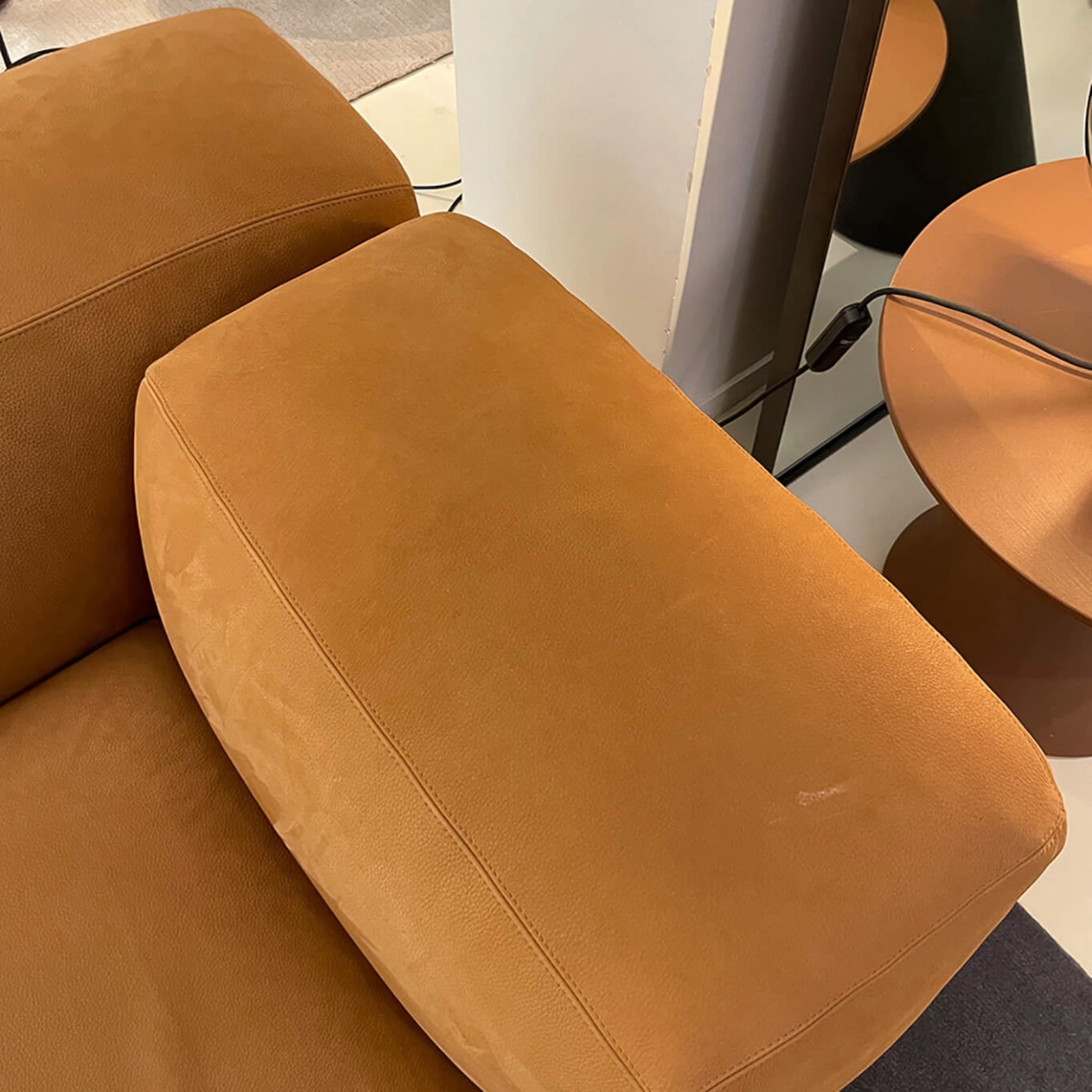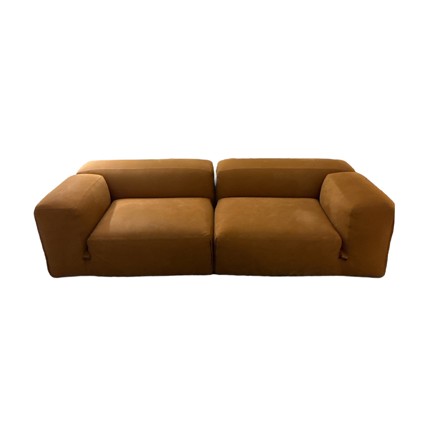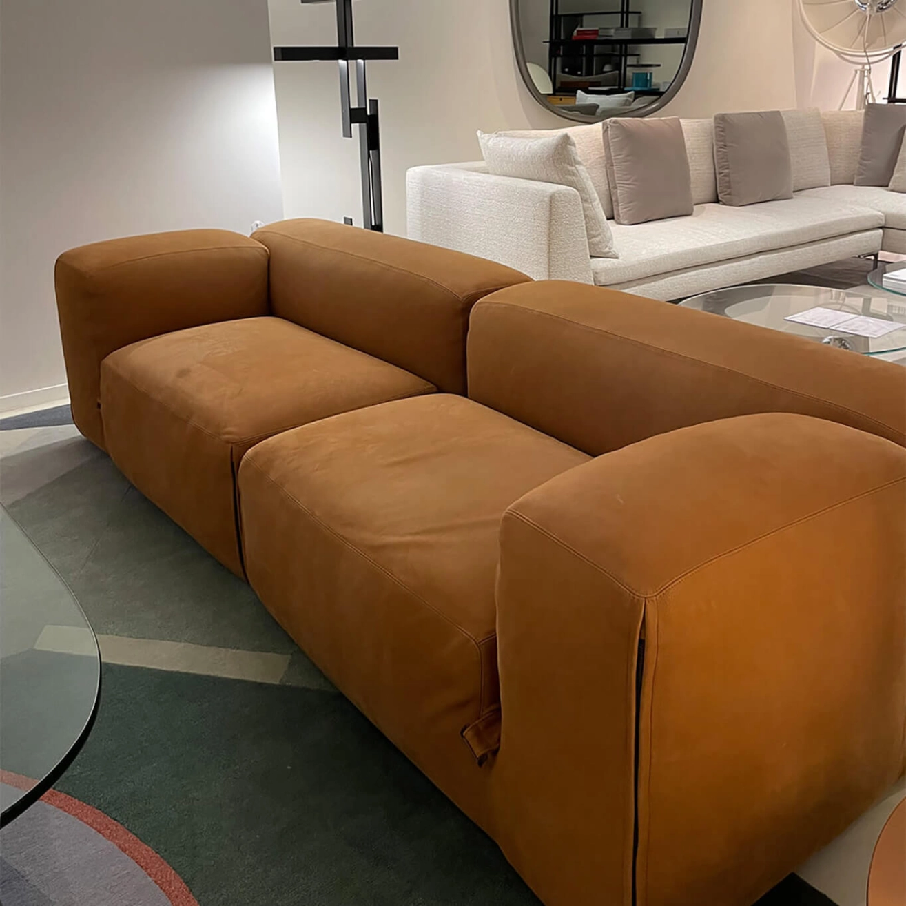 Designed in 1972 by Mario Bellini, the canapé Le Mura Mario Bellini embodies the spirit of radical Italian design that defined an entire era. Now faithfully reissued by Tacchini, this iconic model is offered here in a version upholstered in Aniline Zahir 10 leather — a noble, natural material that enhances the bold architectural lines while delivering exceptional comfort. This pre-owned sofa retains all the expressive power and timelessness of its original concept, reflecting the visionary approach of its creator. Conceived from the outset as a modular system, it allows for endless configurations thanks to seating elements that interlock like the stone blocks of ancient Roman walls. This ingenious design makes it both sculptural and adaptable, perfectly suited for compact spaces as well as large, open interiors. This pre-owned sofa presents a rare opportunity to own an iconic piece of Italian design, combining heritage, character, and elegance — a truly meaningful and stylish addition to any living space.