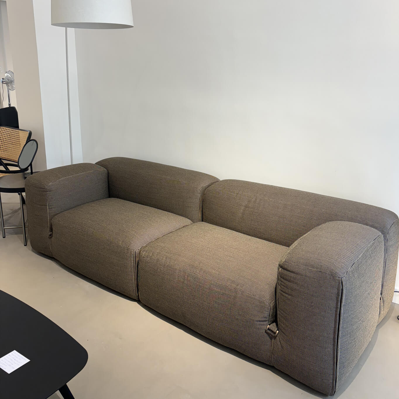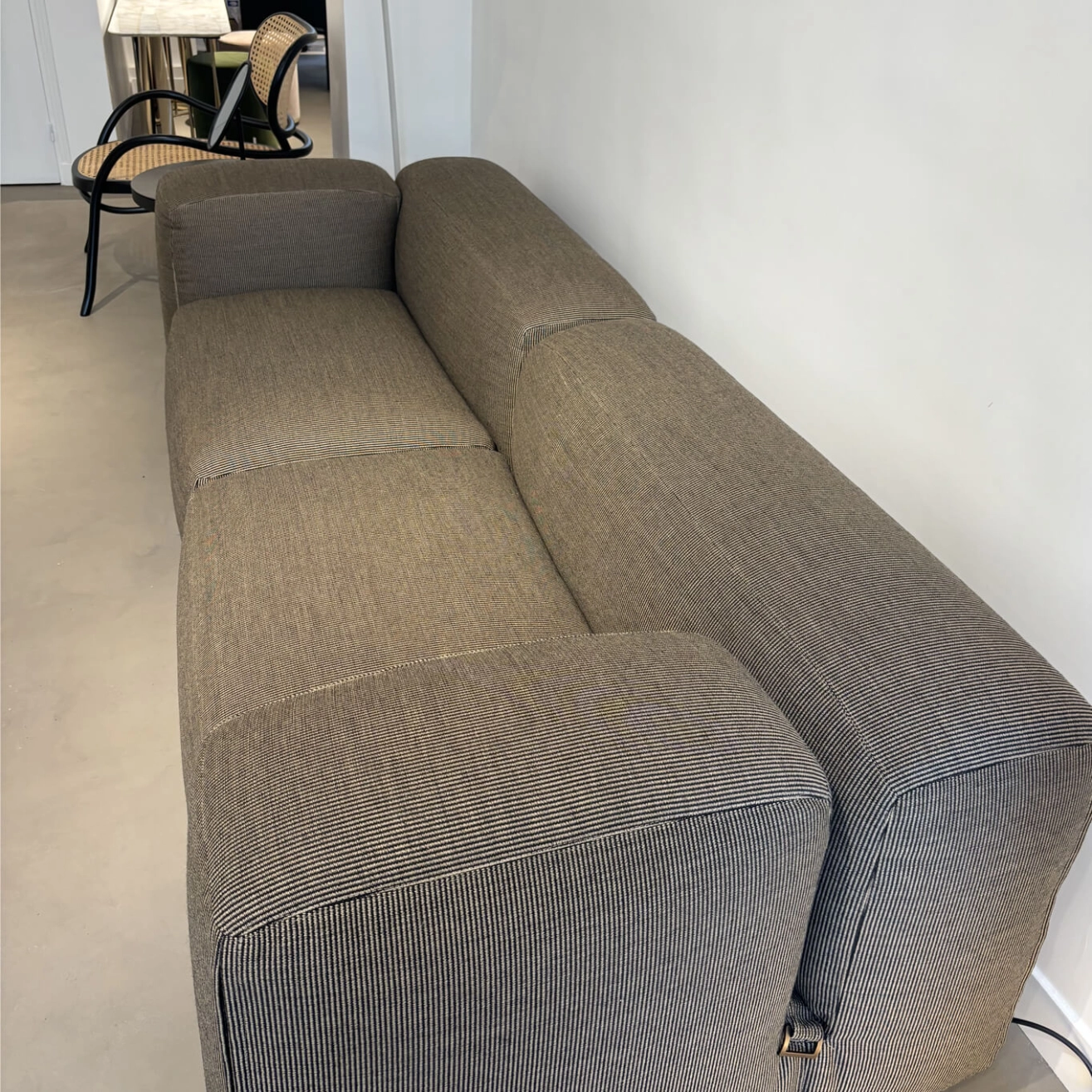 Le canapé d'occasion Le Mura, réédité par Tacchini et dessiné à l’origine par Mario Bellini en 1972, incarne une vision architecturale et sculpturale du mobilier. Son nom, qui signifie "les murs" en italien, fait directement référence aux anciennes murailles de Rome : chaque module du canapé évoque un bloc massif, soigneusement assemblé pour former une structure cohérente, puissante et visuellement imposante. Pensé comme un système modulaire, Le Mura permet une grande liberté de composition. Il se compose d’éléments aux formes simples mais généreuses, qui peuvent être combinés à l’infini selon les besoins et les espaces, qu’il s’agisse d’un salon privé, d’un hall d’hôtel ou d’un espace public. La nouvelle version proposée par Tacchini conserve l’esprit radical des années 1970 tout en y ajoutant un confort contemporain : des assises profondes, un rembourrage moelleux en mousse de haute qualité et des revêtements riches et variés – velours côtelé, laine, cuir ou tissus écoresponsables. Son design se distingue aussi par l’usage de sangles apparentes, en métal cuivre ou nickel, qui assurent la liaison entre les modules tout en créant un détail esthétique fort, presque ornemental. Elles symbolisent autant l’union des éléments que la connexion entre les individus, dans un esprit profondément social. Le canapé d'occasion Le Mura est à la fois un objet design iconique et une solution d’aménagement flexible et confortable. Il exprime toute la richesse du langage formel de Mario Bellini, entre rigueur géométrique, matérialité raffinée et fonction adaptée aux modes de vie contemporains. Grâce à cette réédition, Tacchini redonne vie à une pièce maîtresse du design italien, fidèle à son histoire tout en s’inscrivant pleinement dans le présent.