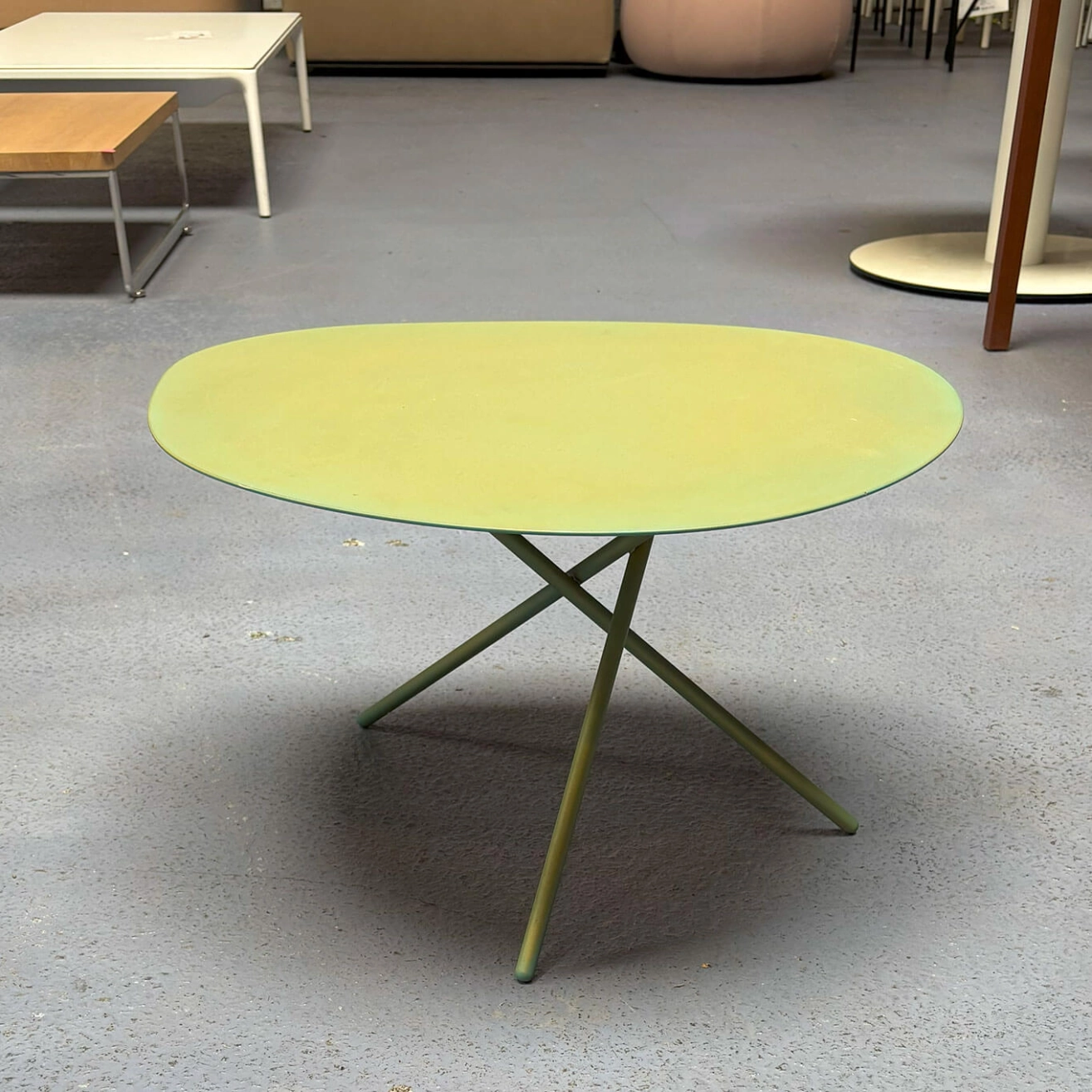 The Lever coffee table by Paola Lenti embodies contemporary elegance through a subtle blend of minimalist design and premium materials. Crafted from AISI 304 stainless steel sheet, the painted and polished top features a glossy, reflective finish that is both durable and sophisticated. The available colors are inspired by the Mano Lucida sample book, evoking the richness of wood grains in modern tones. The base consists of a matching stainless steel rod, also finished in high-gloss paint, and reinforced with plastic spacers to ensure optimal stability. Available in two sizes, the Lever table adapts effortlessly to a variety of settings, whether in a living room, reception area, or lounge space. A perfect balance of durability, functionality, and refined aesthetics, this iconic piece adds a touch of sophistication to any interior.