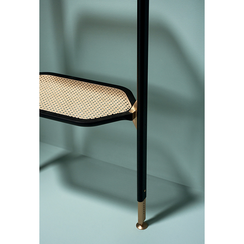 Libelle bookcase are in black-stained maple with rattan or leather-covered interior, honey maple with black cane or leather-covered interior. With its clean lines, mix of materials and infinite possibilities, the