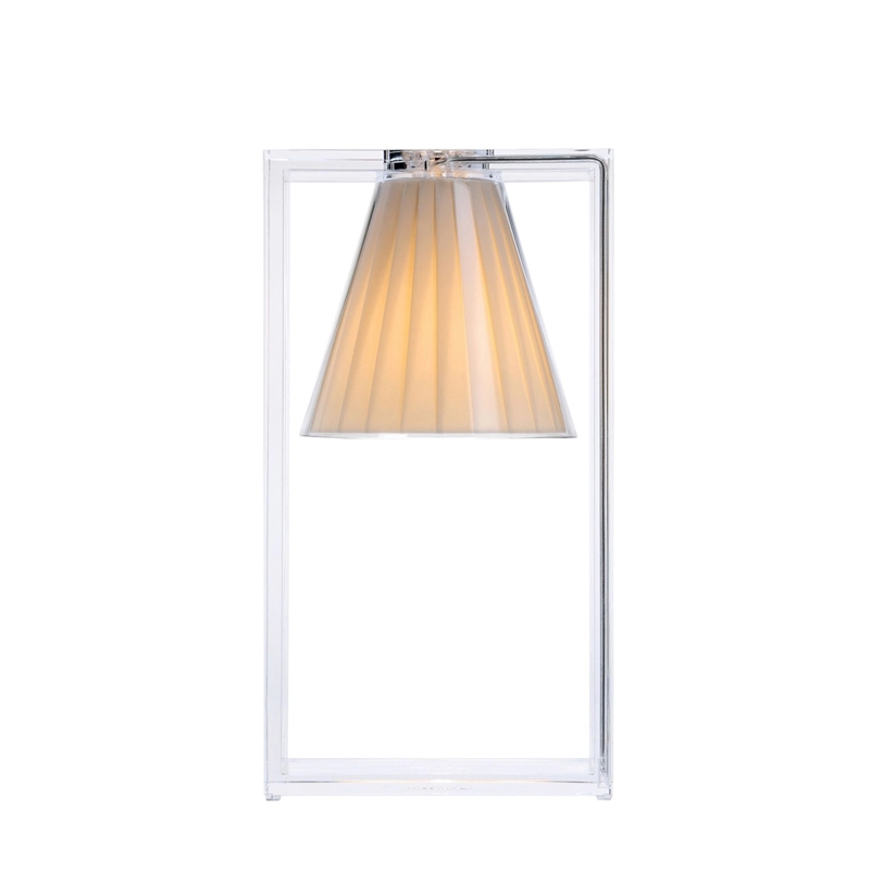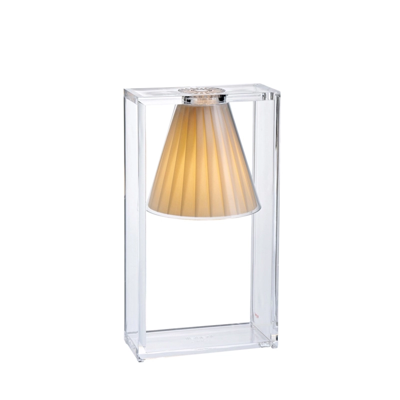 Designed by Eugeni Quitllet, Light-Air is an original table lamp that seems to defy the laws of gravity. Its structure consists of a rectangular frame made of transparent thermoplastic technopolymer, inside which a diffuser is suspended, the interior of which is made of pleated fabric. Produced by Kartell, this lamp is characterised by its graphic lines and the almost magical and mesmerising effect it produces in the bedroom or living room.