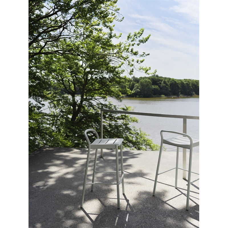 The Linear Steel bar stool by Muuto was designed with simple, elegant lines and subtle details for a modern expression. With its appealing organic shapes, great comfort, and durable qualities, Linear Steel is an outdoor bar stool that makes no compromises. It is defined by its contrasts, combining clean lines for the seat with gentle curves for the backrest. Edited by Muuto, Linear Steel is a sustainable collection that offers a solution as functional as it is aesthetic for any garden, terrace, café, or workplace.