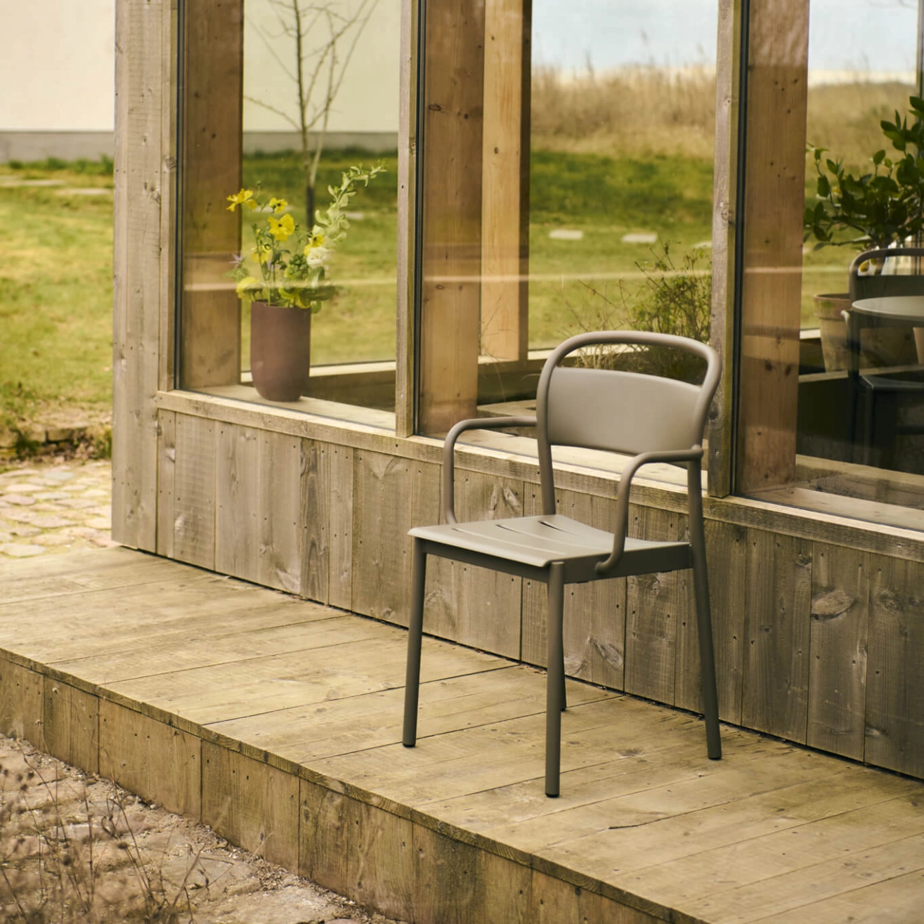 The small armchair Linear Steel by Muuto was designed with simple, elegant lines and subtle details for a modern expression. With its appealing organic shapes, great comfort, and durable qualities, Linear Steel is an outdoor armchair that makes no compromises. It is defined by its contrasts, combining clean lines for the seat with gentle curves for the enveloping backrest. Edited by Muuto, Linear Steel is a sustainable collection that offers a solution as functional as it is aesthetic for any garden, terrace, café, or workplace.