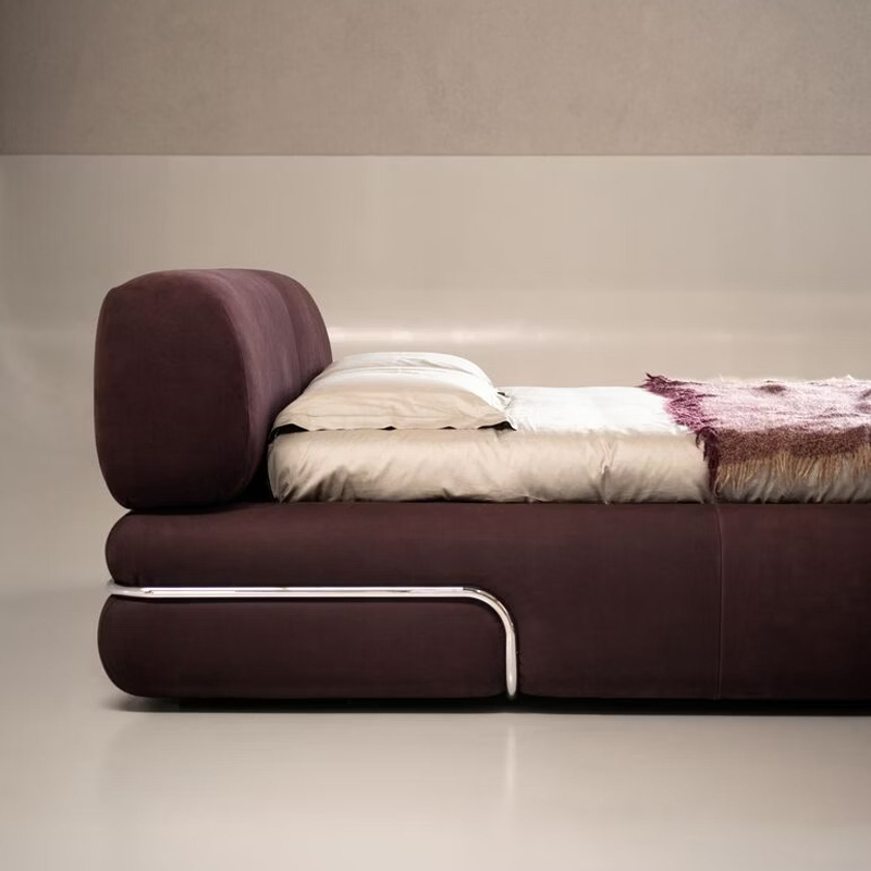 So Soft by Baxter is a collection that celebrates the comfortable side of life. Designed by Studiopepe, the So Soft bed with rounded edges enriches the space with new possibilities for comfort and conviviality, in a vision of the bedroom as a welcoming and relaxing place. This impression is accentuated by the leather upholstery, set off by the sinuous embrace of the tubular metal elements that contain its shapes. The So Soft collection is a reassuring oasis, a cosy refuge to take a break, alone or in company.