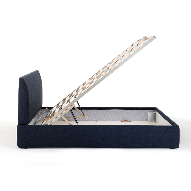 Talamo Box bed is covered with a removable fabric cover, making it easy to clean. A practical storage compartment is built into the base, accessible via a specially designed lifting mechanism. Sleek aesthetics and clever functionality, the