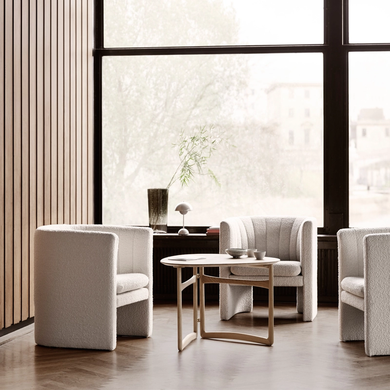 Space Copenhagen is a Danish multidisciplinary design studio founded in 2005 by Bindslev Henriksen and Peter Bundgaard Rützou. They work at the crossroads of disciplines, from furniture and lighting to art installations, interior design for private homes, hotels and restaurants around the world, and art direction. Their ambition is to blaze new trails by balancing opposites: classic and modern, industrial and organic, light and shade, duality and contrast. They call their approach Poetic Modernism. The principles of functionality, slow design and the study of human behaviour guide their work. The result is quality and longevity. Their various collaborations with Fredericia, AndTradition, Gubi and Mater demonstrate their ability to break with codes and constantly renew themselves. The Swoon armchair is one of their iconic creations. The use of soft colours and natural materials such as wood, stone, leather and brass develop a patina over time and lend a certain charm to objects.