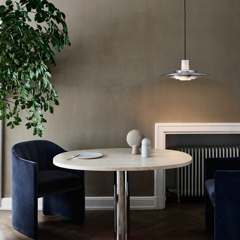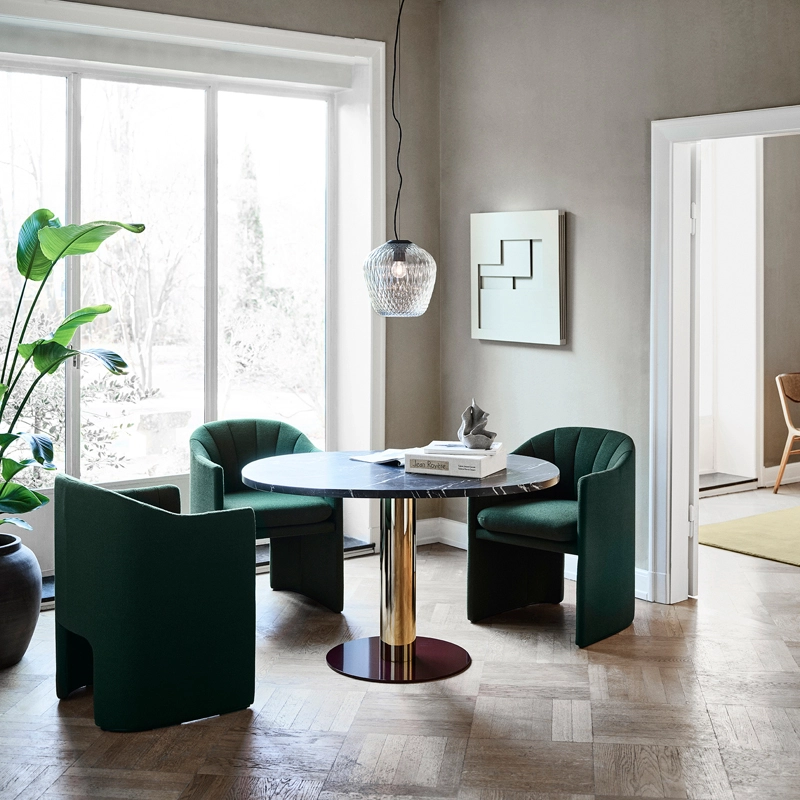Loafer SC24, hushed to the touch and conducive to conversation. Dedicated to relaxation – as its name suggests – this small armchair has been designed to make you want to linger longer and enjoy spending time with your guests around the dining table. Slightly narrower and with a higher seat for dining, it has elegantly sloping sides that rise from the backrest to comfortably accommodate your arms. The upholstered seat cushion and backrest add extra comfort. For this small armchair, Space Copenhagen explains, they wanted to 'create a hotel atmosphere, refined by its details, which make it ideal for sitting in a restaurant or simply at home'. All elegance, the