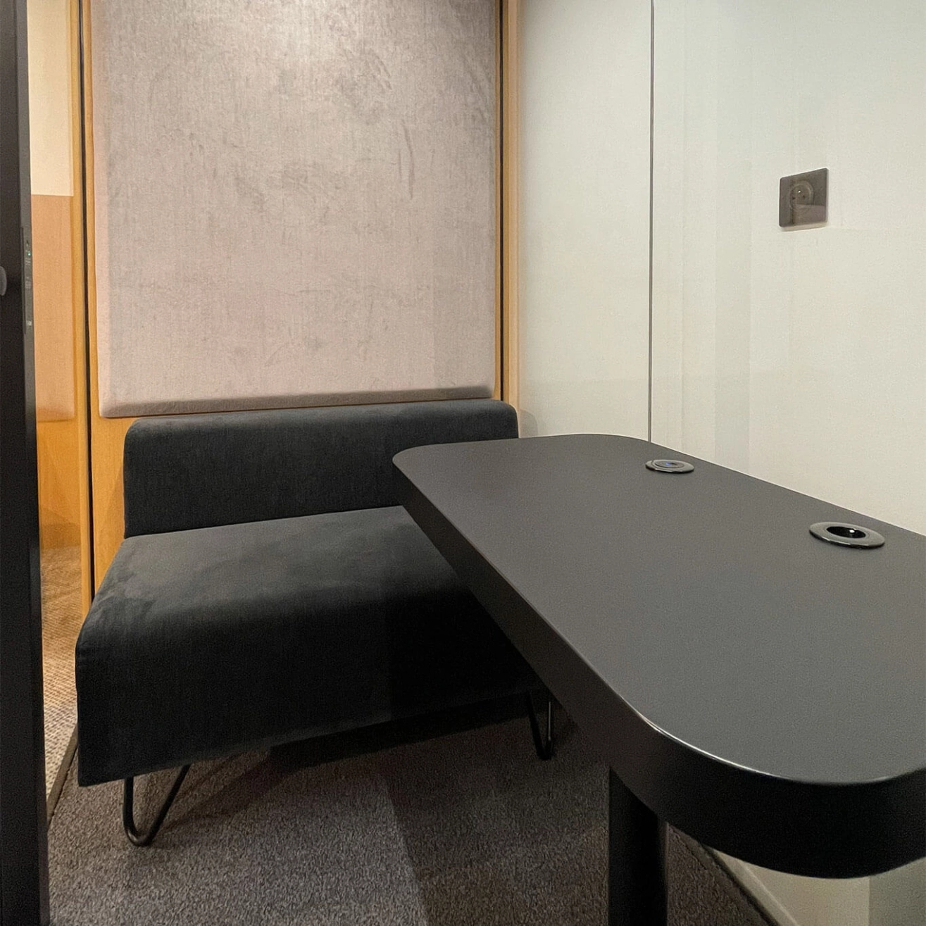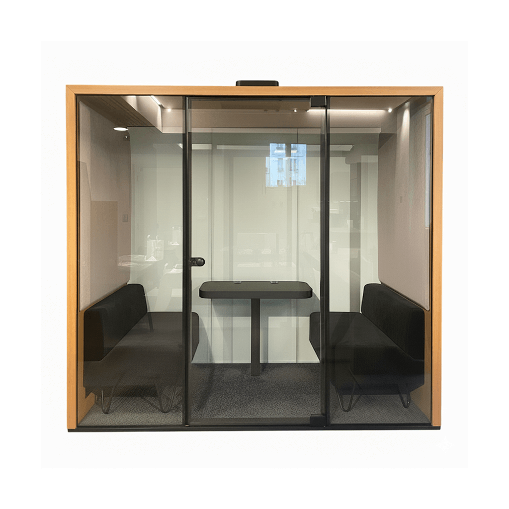 The pre-owned Lohko Box 2 by Taiga is a compact 2 m² acoustic booth designed for 1 to 2 users, providing a quiet and private space for focused work or confidential discussions. Inspired by Nordic design, it combines clean lines, high-quality materials, and high-performance acoustics. Equipped with recycled fabric acoustic panels, dimmable LED lighting, and intelligent ventilation, it ensures optimal comfort. Highly customizable, with wood finishes, fabric options, standard or privacy glass, and integrated furniture, the Lohko Box 2 adapts to any environment and can be easily moved or reconfigured thanks to its modular design.