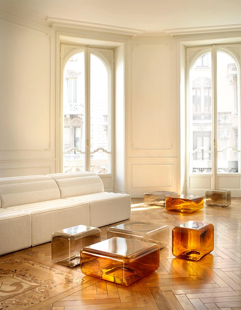 Lokum est une collection de tables basses où le matériau, la couleur et la lumière fusionnent dans un jeu de matières intense. Editée par Acerbis, Lokum est une collection qui incarne cette élégance des formes pures, rehaussée par une utilisation artisanale du verre soufflé. Sabine Marcelis, connue pour son utilisation poétique et précise des surfaces réfléchissantes et des nuances de couleurs irisées, a créé une collection d’une beauté éthérée générant d’extraordinaires jeux d’ombre et de lumière. La petite table en verre Lokum Acerbis est disponible en version rectangulaire et carrée dans deux teintes différentes et offre une grande flexibilité d’utilisation, tant en élément unique qu’en association avec d’autres modèles pour créer des configurations uniques et personnalisées dans le salon.
