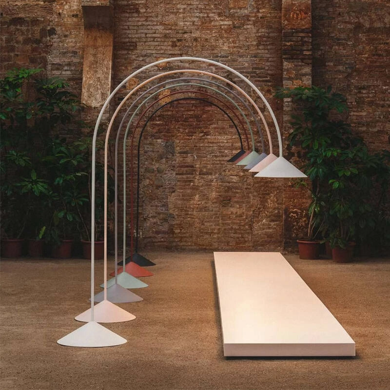 The Out floor lamp was designed by Victor Carrasco for the Italian house VibiaOut presents itself as the ultimate lighting solution for any communal space. It is designed to collapse with the wind while remaining firmly attached to its cement base. The floor lamp's diffuser ensures constant lighting and positioning, even when the shade moves. The Out floor lamp features a curved steel stem and aluminium shade, and is available in a wide range of natural and textured colours. It projects adjustable light using a dimmer switch, so you can tailor the light distribution to suit the atmosphere you want. The Out luminaire from Vibia brings elegance and modernity to any outdoor landscape by adding a touch of poetry.