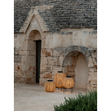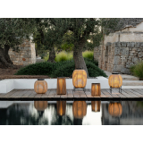 The Tika lantern by Vincent Sheppard is a cordless LED lamp, offering your outdoors a warm and welcoming glow. Made from an aluminium frame, this lantern has synthetic wicker walls that diffuse light softly and subtly, creating a magical, intimate atmosphere every time it's used. It can be placed on a garden table to light up your outdoor meals, hung from a tree to create a romantic atmosphere or placed along a path to light up your evenings. Tika is equipped with a solar-powered LED lighting system. What's more, its portable, cordless design makes it easy to move around. Available with a steel base, a teak base or without a base, Vincent Sheppard's Tika lantern meets everyone's tastes and desires.