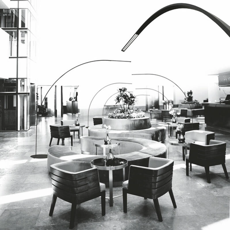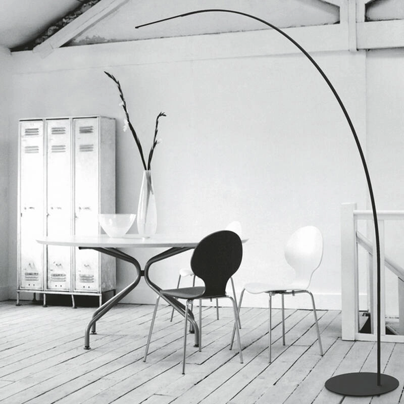 Yumi means bow in Japanese. Today, this simple form is reinterpreted by Shigeru Ban for Fontana Arte. Its absolute harmony is destined to become a new universal classic. Yumi is both delicate and strong: an essential sign that responds to a resistant and light structure. 170 LEDs are discreetly embedded in the lamp structure, minimizing the light's footprint and further reinforcing the continuous line of the arc design. The choice of high temperature resistant materials means that the wire is completely concealed inside the stem during the production process. The Yumi floor lamp diffuses a warm light downwards, which is ideal for creating an intimate atmosphere. It adds character to a variety of interiors with its distinct and subtle personality.