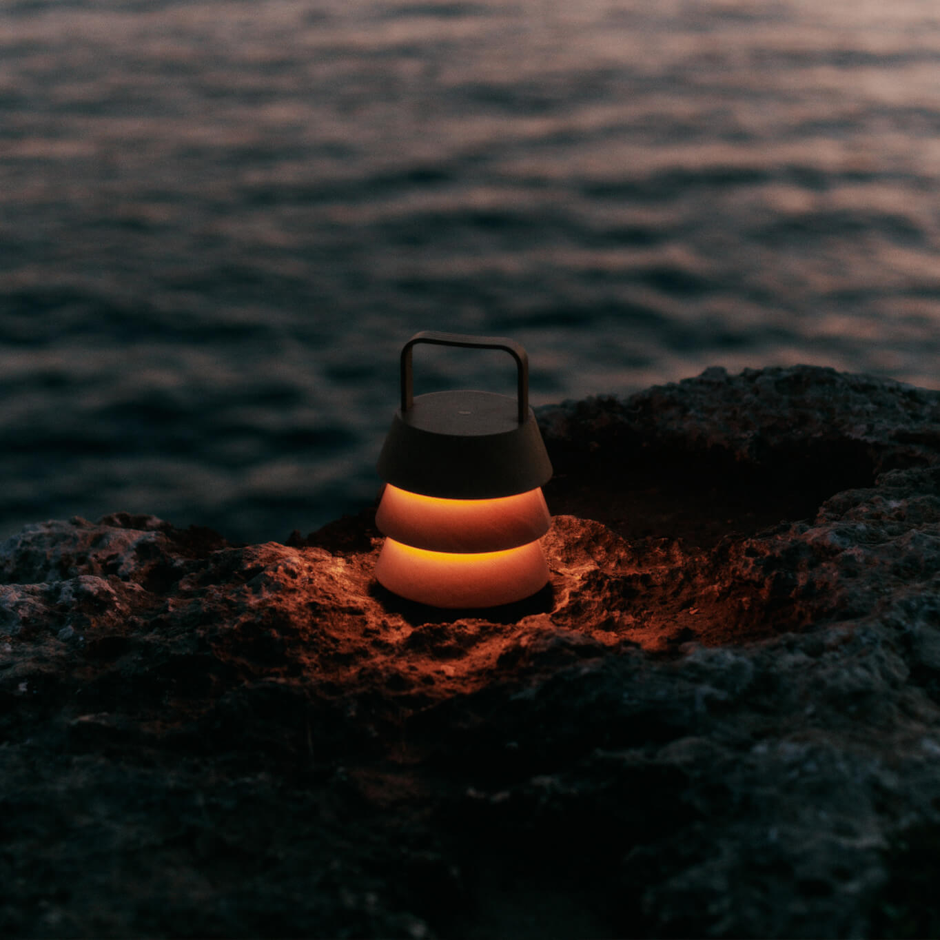 The collaboration Ferm Living × Utzon – Can Lis is inspired by the family home of architect Jørn Utzon in Mallorca, where natural elements merge with design elements, reflecting his unique philosophy. The Luver Portable Lamp combines elegance and portability. The stacked structure of the three conical shades made from Douglas fir highlights the precision of the lamp’s craftsmanship. The steam-bent wooden handle adds a handcrafted, human touch, while the designer lamp provides diffuse light, creating a warm atmosphere. With a touch dimmer and three light settings, it is ideal for indoor and outdoor use in dry weather. This versatile lamp with an elegant design adds warmth and sophistication to any space.