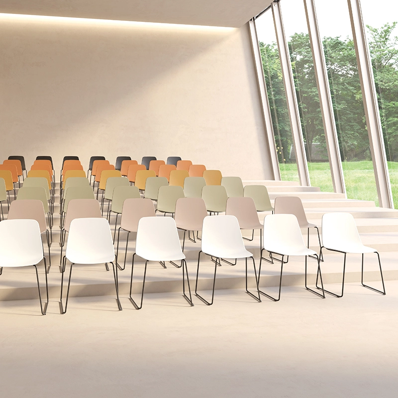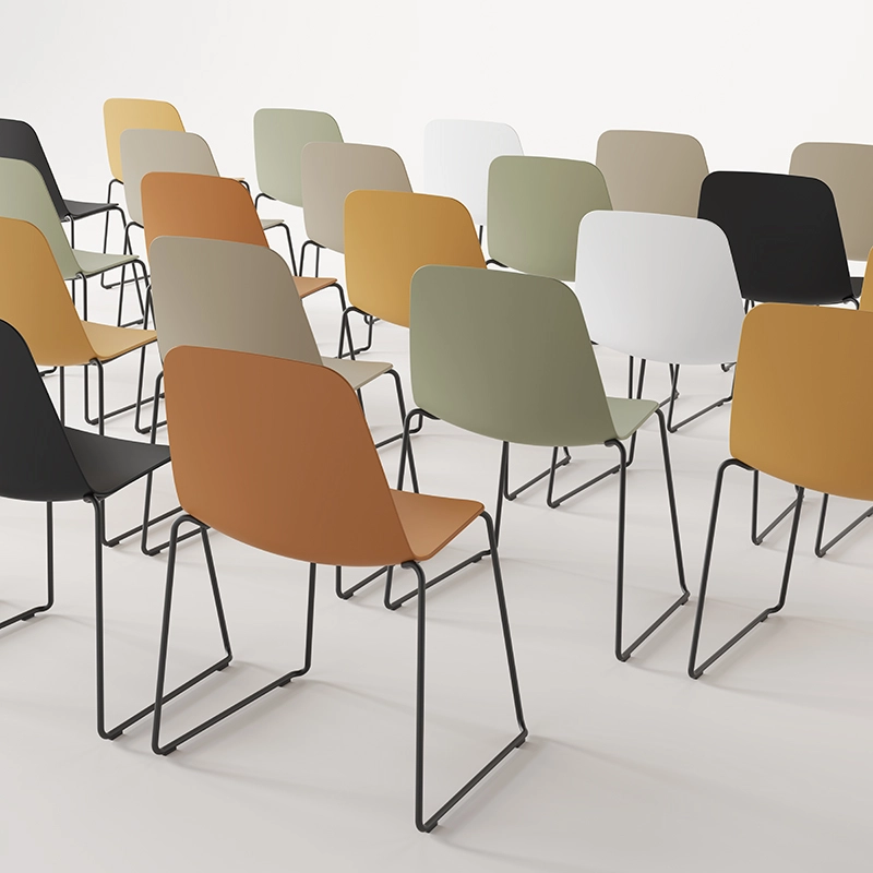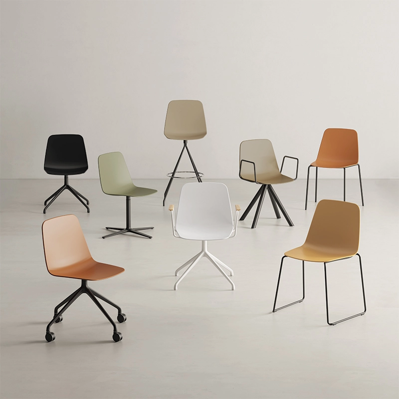 Maarten Plastic, designed by Victor Carrasco, symbolises Viccarbe's venture into polypropylene: a particularly durable material, more adaptable to the user's movement, capable of complementing the Viccarbe collection from a use and function point of view. This version of the chair retains the diamond-shaped seat characteristic of the Maarten family. Additional features include a wide range of bases (four legs, sled swivel, pyramid, caster etc.) and, depending on the type of base, the option to stack, a great benefit in shared spaces. With Maarten Plastic, Victor Carrasco strengthens his design trajectory with the creation of iconic, timeless, Mediterranean pieces that are both comfortable and affordable. A durable option for businesses that's still welcoming in the home.
