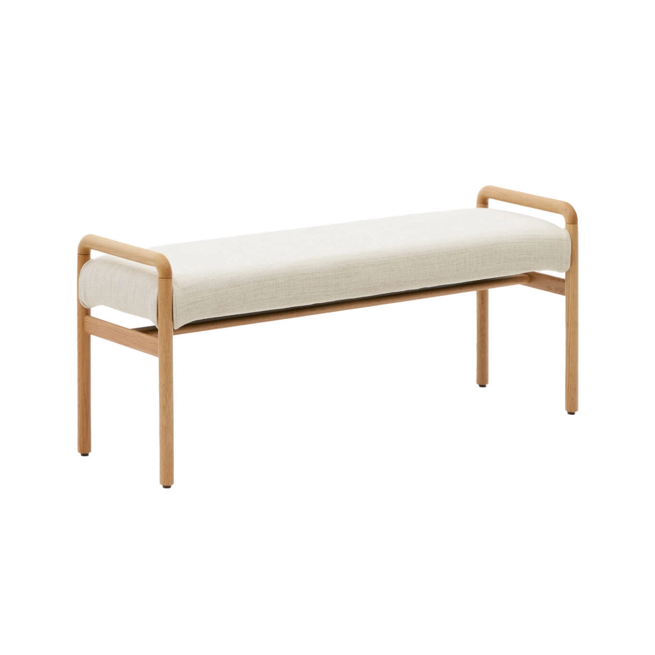 The Macaret bench by Kave Home blends the natural essence of wood with a minimalist design inspired by Scandinavian style. Made from solid oak wood certified FSC Mix Credit, it is available in natural or stained finishes, showcasing the authentic beauty and durability of the material. Its lightweight structure and clean lines evoke Nordic elegance, while the seat, upholstered in beige chenille fabric, features a removable cover for easy maintenance. The fabric brings softness, warmth, and style to your spaces. Designed to offer both harmony and functionality, the Macaret bench fits seamlessly into all types of interiors, from contemporary to natural.