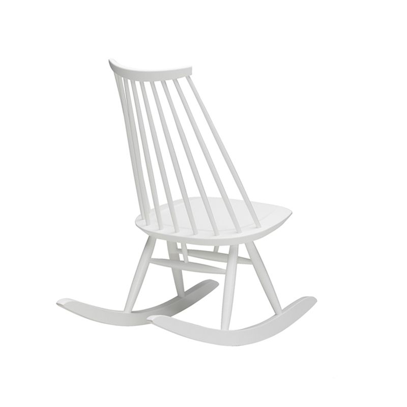 Designed by Ilmari Tapiovaara in 1956, the Miss Rocking Chair is a classic Finnish design produced by Artek. Its backrest slopes and narrows upwards to mould perfectly to your back, and this, along with the chair's gentle rocking movement, ensures you can relax and make the most of your interior. It is made entirely of black- or white-stained birch. Its iconic shape will work as well in a child's bedroom as in the living room. This timeless chair captures the essence of Finnish design and adds a discreetly elegant touch.