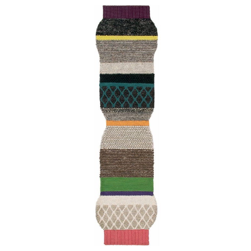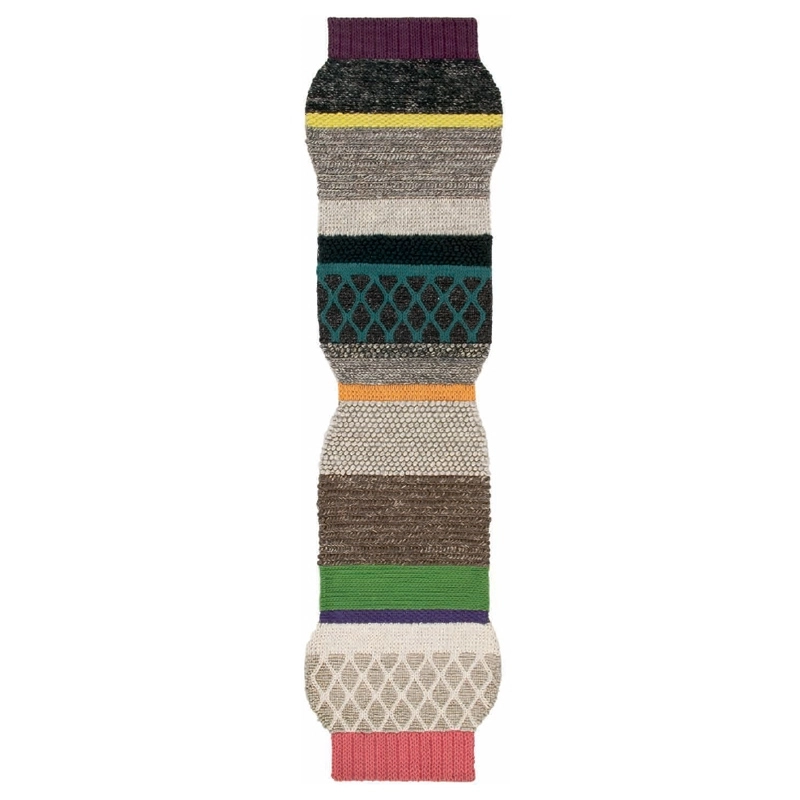 Mangas, from the Spanish word for 'sleeves', is a collection of rugs designed by Patricia Urquiola for the Spanish textile company Gandia Blasco. These rugs come in a variety of shapes and colours, and look like hand-knitted sweaters laid flat. For this collection, Patricia Urquiola drew inspiration from woollen patchwork patterns created using various stitches, giving the effect of different knits assembled together. These rugs are 100% hand-made and come in the shape of a balloon, bell, and a small lantern. Some are stretched, and all are part of the brand's Gan Rugs collection. The Mangas collection has won numerous international design awards since its launch in 2009.