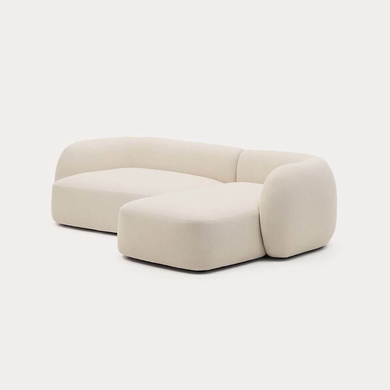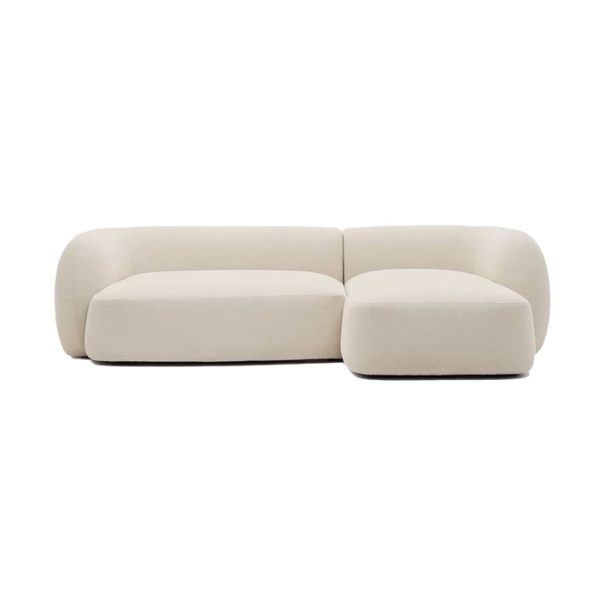 Kave Home stands out with a design inspired by organic shapes, featuring smooth curves, flowing lines and rounded volumes that deliver both modern elegance and superior comfort. Composed of a right-hand chaise and an asymmetric module, it offers a versatile and inviting seating arrangement. Its recycled chenille fabric, certified Global Recycled Standard and OEKO-TEX® STANDARD 100, is soft, scratch-resistant, easy to maintain and ideal for pet-friendly households. The semi-firm seat, supported by elastic straps and 30 kg/m³ foam, ensures durability and support, while the 20 kg/m³ foam backrest provides an enveloping feel. Locally produced in Europe to reduce CO₂ emissions, Martina combines thoughtful design, comfort and environmental responsibility for everyday living.