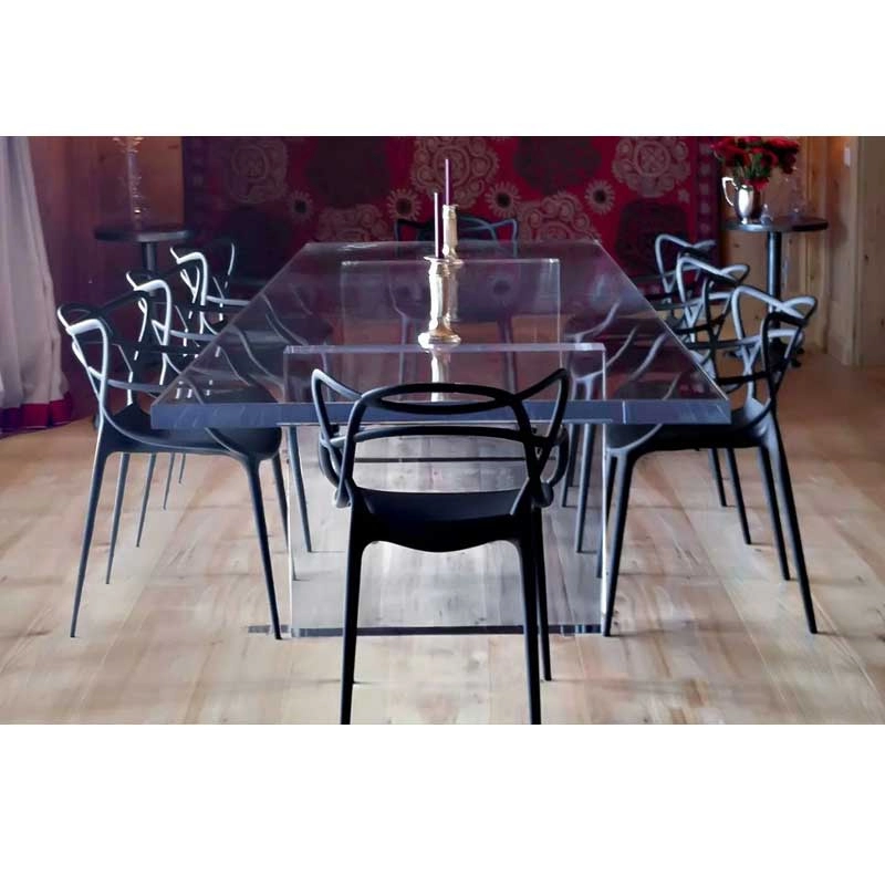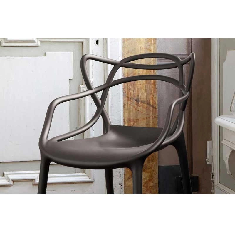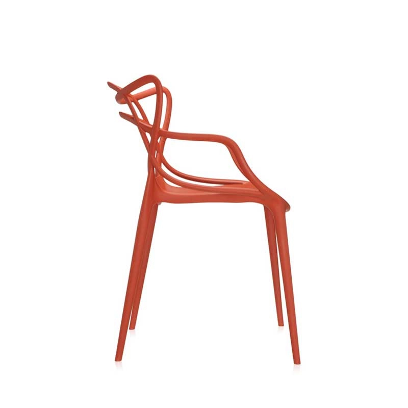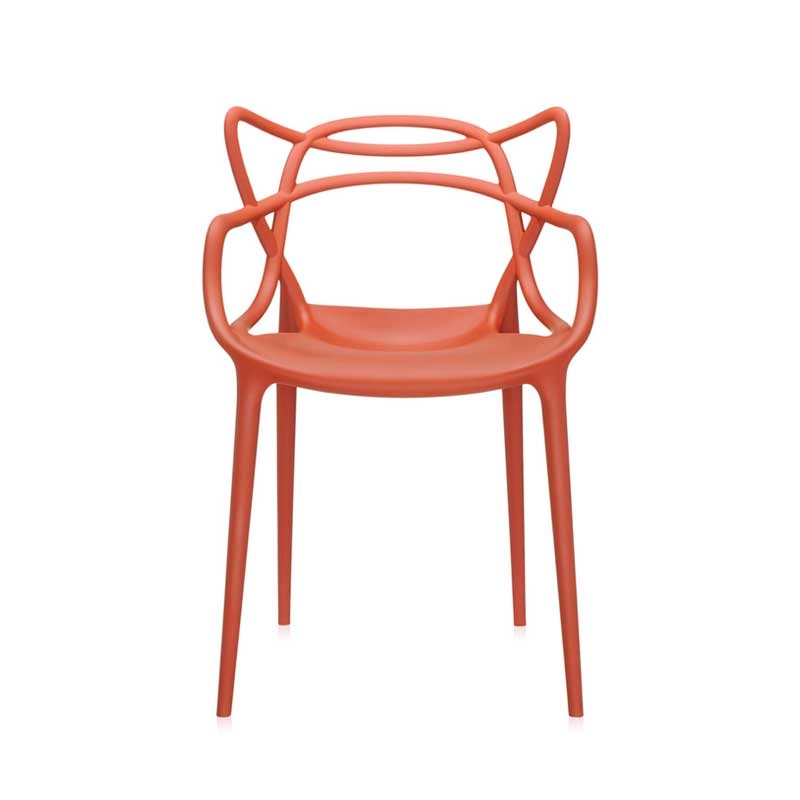 Designers Philippe Starck and Eugeni Quitllet pay tribute to three icons of contemporary design and bring to life a fusion of styles to achieve a "stylistic synthesis". Indeed, the interweaving of sinuous, dynamic lines on the back of the Masters Chair, evokes the silhouettes of three contemporary design classics: Arne Jacobsen's Series 7, Eero Saarinen's Tulip Armchair and Charles Eames' Eiffel Chair. Created in 2009, the Masters chair by Kartell has already achieved design icon status. These chairs intertwine to create an original and captivating fusion of styles. Supported by four slender rods, the seat of the petit fauteuil Masters is ample and comfortable. The distinctive feature of the Masters chair lies essentially in its backrest, characterised by the solids and voids created by the curvilinear intersection of the three different backrests that merge into the seat. The exceptional finish of the Masters chair results from the excellent quality of the materials and the finesse of the lines. Indeed, the Masters chair is also distinguished by a velvety feel of great sensuality. Made from polypropylene, the Masters chair is ultra original, roomy and comfortable. Lightweight, practical and stackable, the Masters chairfrom the Italian house Kartell is available in several colours and can be used both indoors and outdoors. This international bestseller won the Good Design Award in 2010 and the Red Dot Award in 2013.