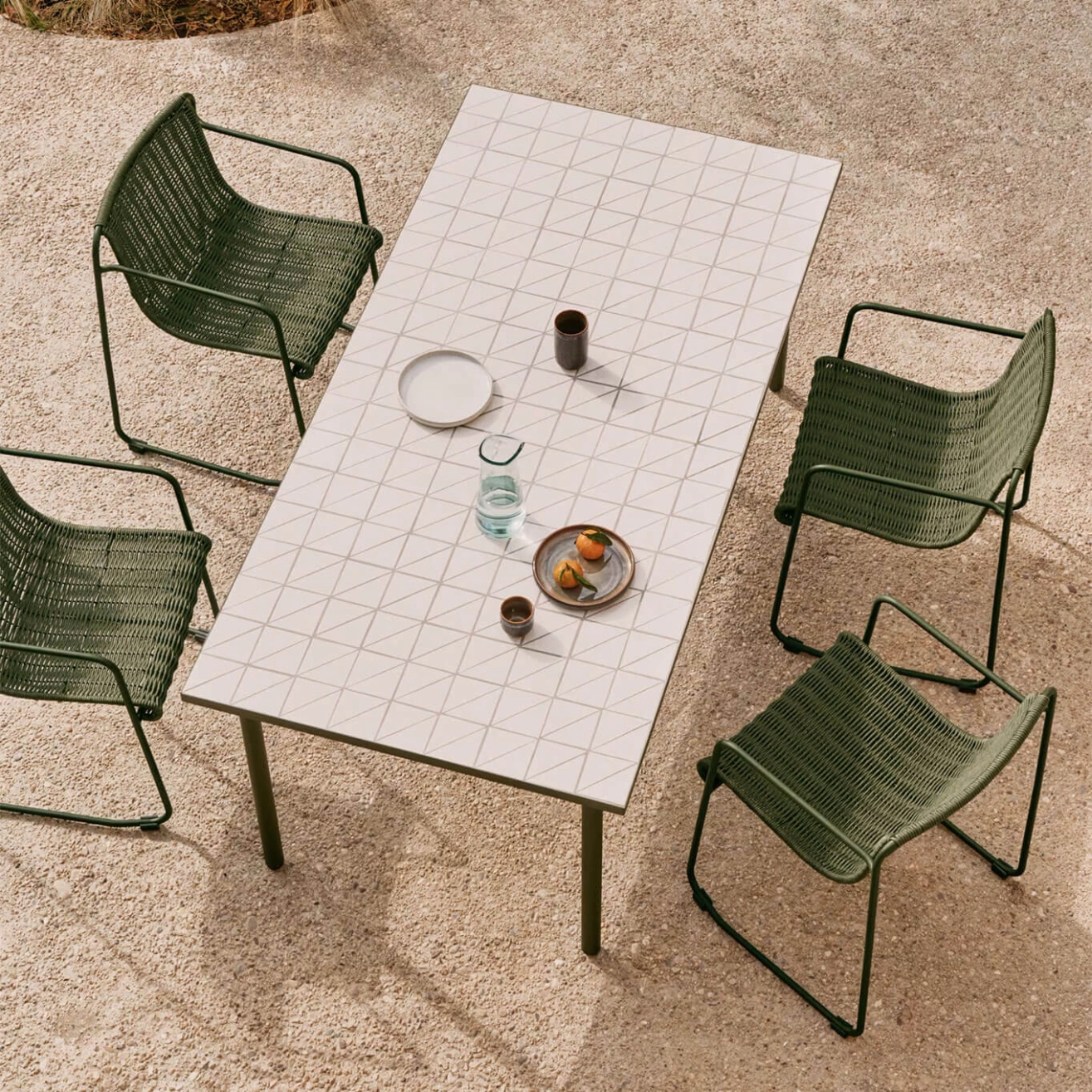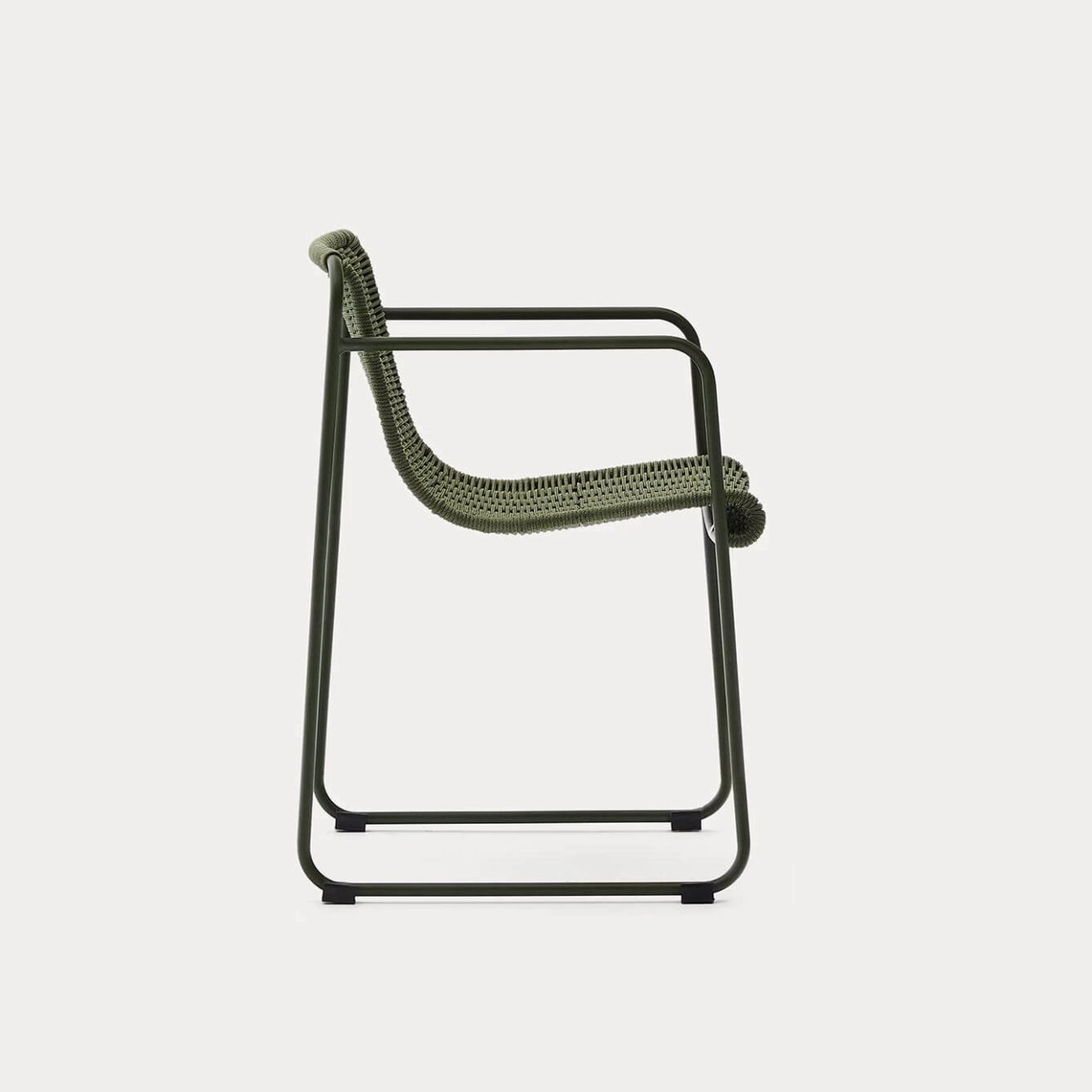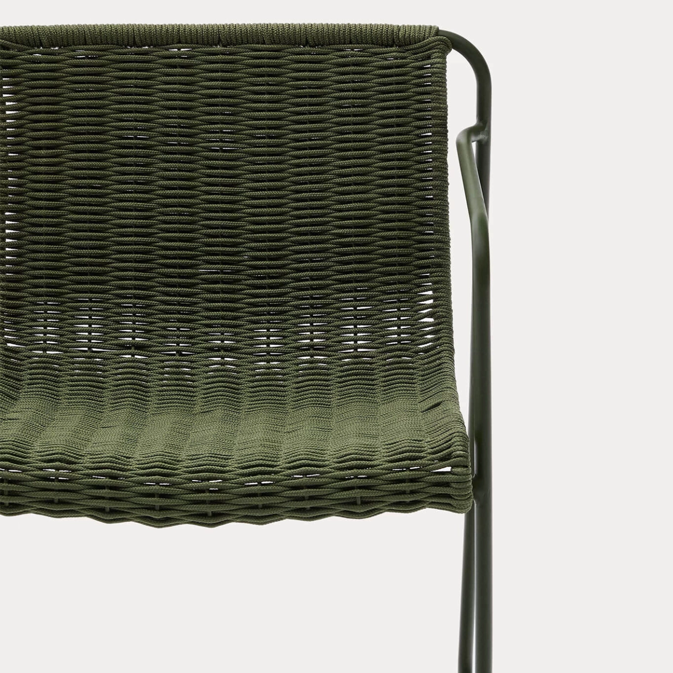 Kave Home collection, an exclusive design by Yonoh Studio that reinterprets Mediterranean aesthetics through a contemporary and vibrant lens. Its galvanized steel structure, resistant to oxidation and corrosion, ensures superior durability, while the UV-resistant hand-woven rope provides both comfort and an artisanal character. Designed for 100% outdoor use, the