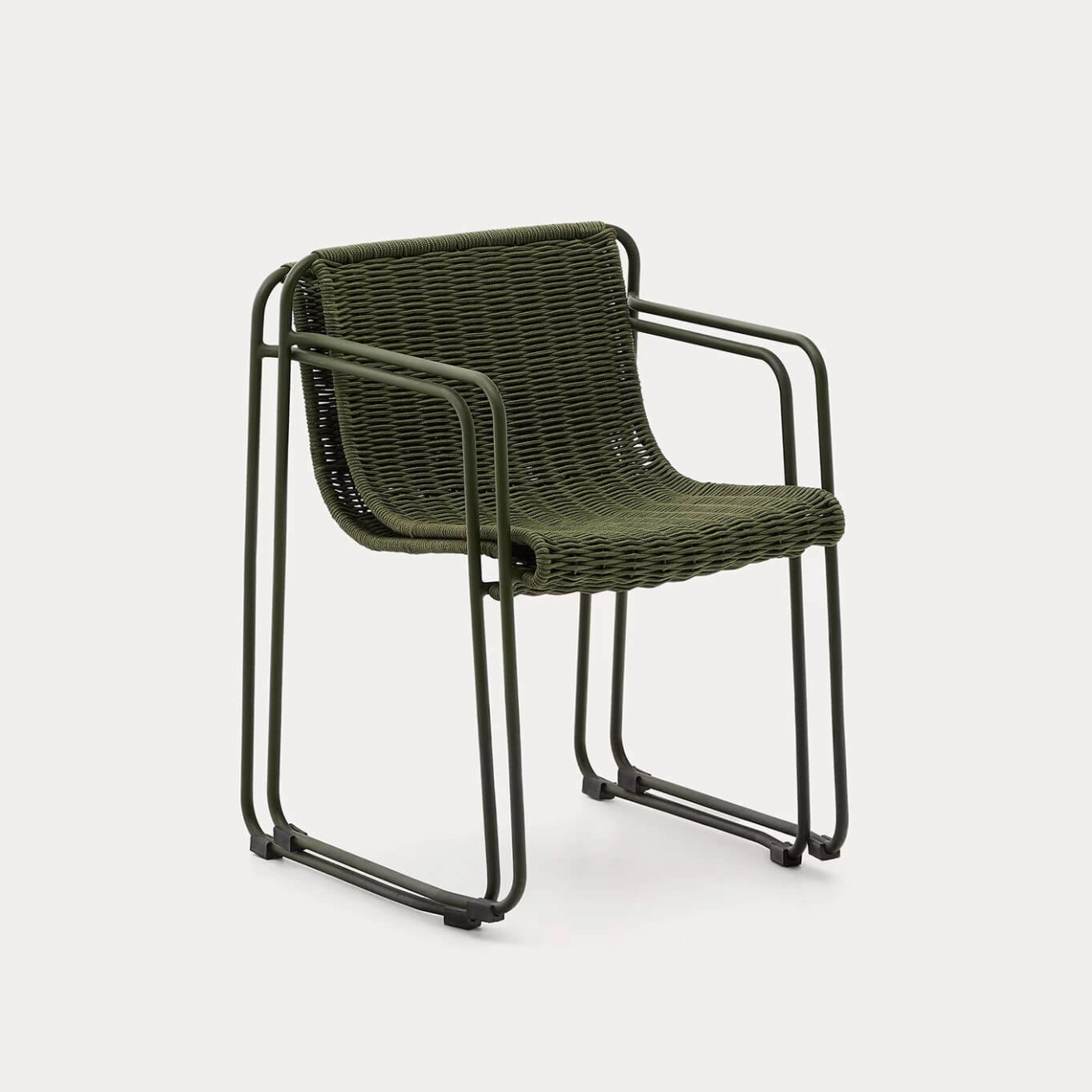 Maurina chair stands out with its sleek sled-style frame, generous seating dimensions, and harmonious blend of traditional craftsmanship and modern design. Stackable for easy storage, it adapts effortlessly to any outdoor setting while adding an authentic and refreshing touch. Inspired by Mediterranean craftsmanship, this piece combines aesthetics, functionality, and durability, offering an inviting way to create an elegant, warm, and truly contemporary outdoor space.