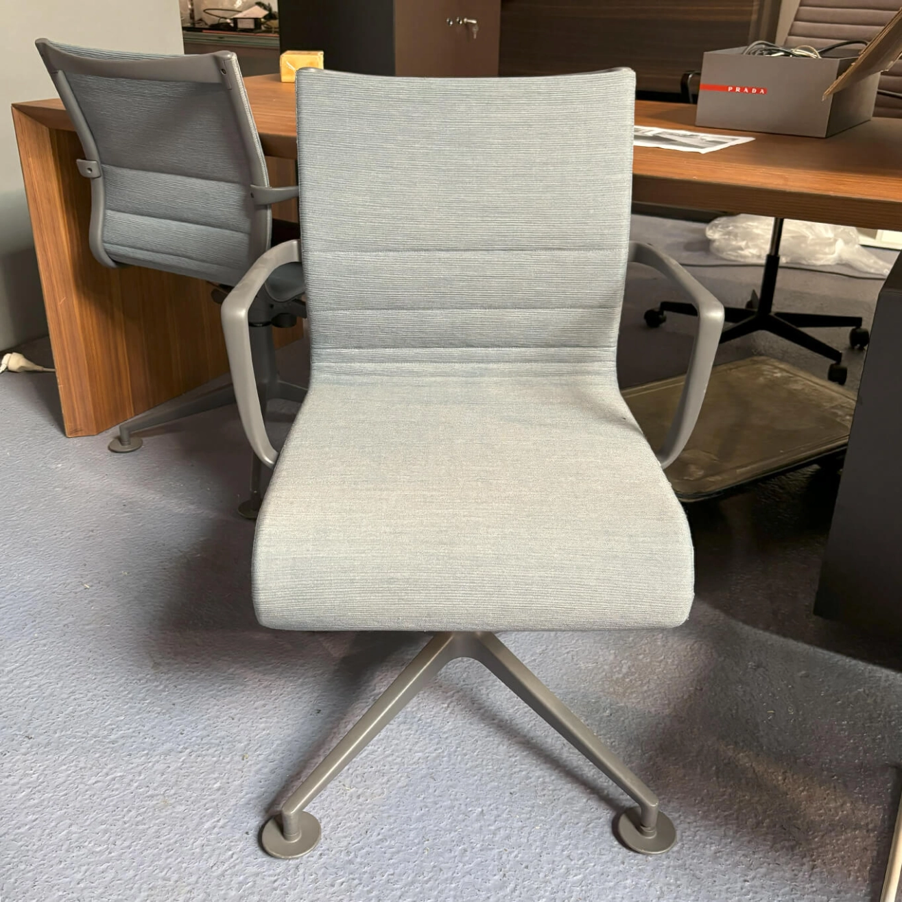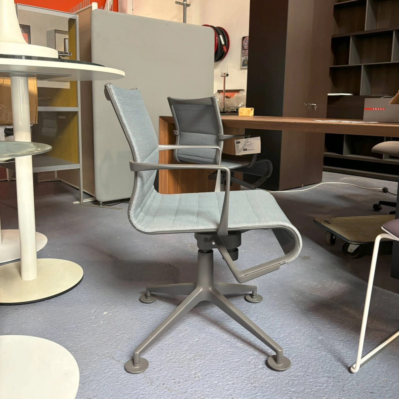 Elegant, functional, and decidedly contemporary, the pre-owned Meetingframe+ armchair by Alias embodies the perfect combination of minimalist design and advanced technology. Designed by Alberto Meda, this high-end armchair stands out for its slim extruded aluminum frame, synonymous with lightness and strength. Its seat is made of fire-retardant mesh fabric or padded fabric, depending on the version, to provide optimal comfort while ensuring excellent breathability. The swivel seat system with automatic return and the slight recline of the Meetingframe+ armchair’s backrest offer discreet yet effective ergonomics—ideal for meeting rooms, conference spaces, or executive offices. Available in a variety of finishes and configurations (with or without armrests, castors, or glides, etc.), the pre-owned Meetingframe+ armchair by Alias adapts to all professional environments where comfort, design, and functionality are essential.