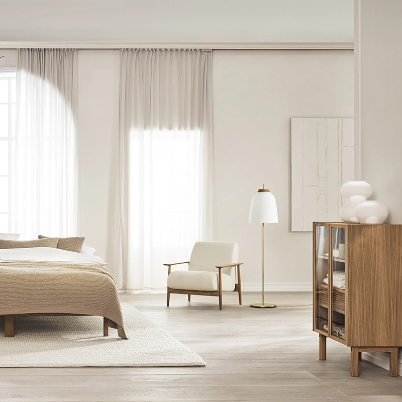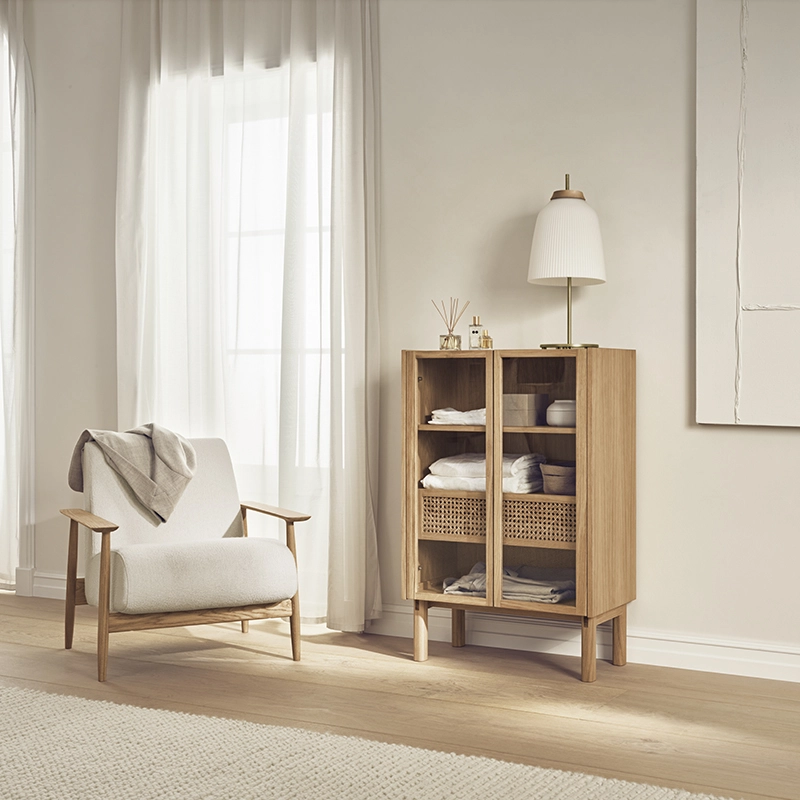 Edited by Bolia, Cana is a collection of storage units with a clean design, distinguished by its natural materials and handcrafted details. Each model in the Cana series has an ethereal, braided front that gives it a peaceful, light and iconic look. With Cana, Danish design duo Steffensen & Würtz have created a complete range of storage units including chests of drawers, wardrobes, bedside tables and sideboards. The designers were inspired by the quiet, characteristic atmosphere of Danish seaside hotels, where serenity and authenticity create a very special atmosphere. The Cana Bolia collection has a clean, transparent expression, perfect for a simple, minimalist ambience in any room of the house.
