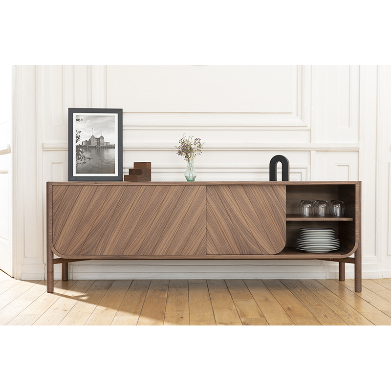 Marius is a storage collection designed by Pierre-François Dubois for Harto. The design is inspired by the maritime world. The shape of boat hulls has been used to create the unique shape of the storage units. The geometrical motif, inscribed on the front of the doors or drawers, is reminiscent of boat sails. Published by Hartô, the Buffet Marius is highly functional, in a living room or hallway, thanks to its two sliding doors. It comes in two different sizes: 155cm and 185cm. The Buffet Marius stands out for its elegance and simplicity.