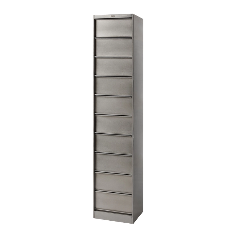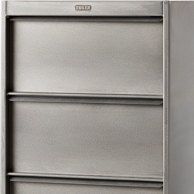 The CC10 drawer box, designed in the 1930s by Xavier Pauchard, the founder of the Tolix manufacture, embodies the very essence of industrial furniture. Its functional, uncluttered design responds specifically to industrial and institutional needs, making it an essential part of furniture history. Versatile and ergonomic, the CC10 drawer pedestal from Tolix finds its place in both domestic interiors and working environments. Its lightness and robustness make it an ideal choice for shared spaces, offering both practicality and durability. Available in a range of sizes, from the 3-drawer (CC3), 5-drawer (CC5), 7-drawer (CC7) and 10-drawer (CC10) models, the CC10 pedestal from Tolix offers a storage solution to suit every need. Embodying the modern style of the 1930s, it skilfully blends retro aesthetics with contemporary functionality, positioning itself at the crossroads of tradition and innovation.