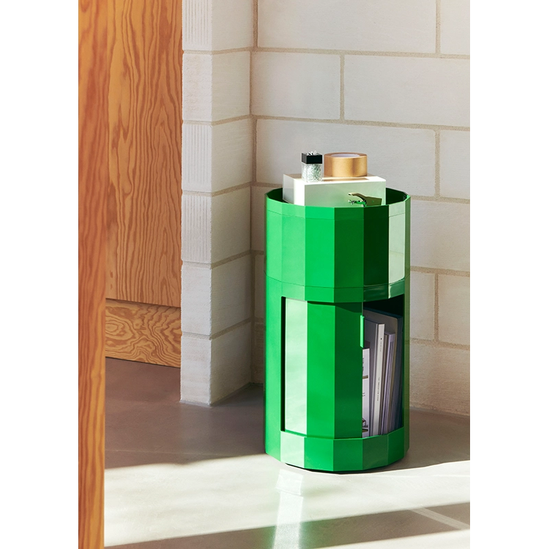 Designed by Dutch designer Stefan Scholten and published by Hay, the Facet Cabinet High is a multifunctional, mobile storage unit. Made from post-consumer recycled ABS, it features an elegant, faceted design with an integrated hinged door. This storage unit can be fitted with castors for added functionality. Available in five timeless colours and two heights, the Facet Cabinet High is perfectly suited to a variety of spaces. Ideal as a bedside table or side table, this versatile piece offers a stylish and environmentally-friendly storage solution.