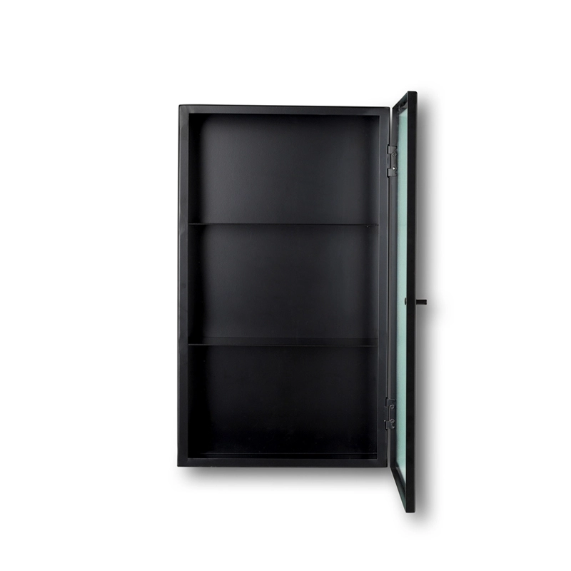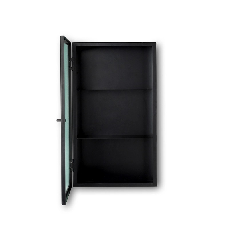 Published by Ferm Living, Haze is a stylish little wall storage unit full of contrasts. Like the other pieces in the collection, it has a slim metal frame and a fluted glass door that reveals the contents. Designed for small items, Haze is ideal for storing glasses in the kitchen or beauty products in the bathroom. It is also available in wired glass.