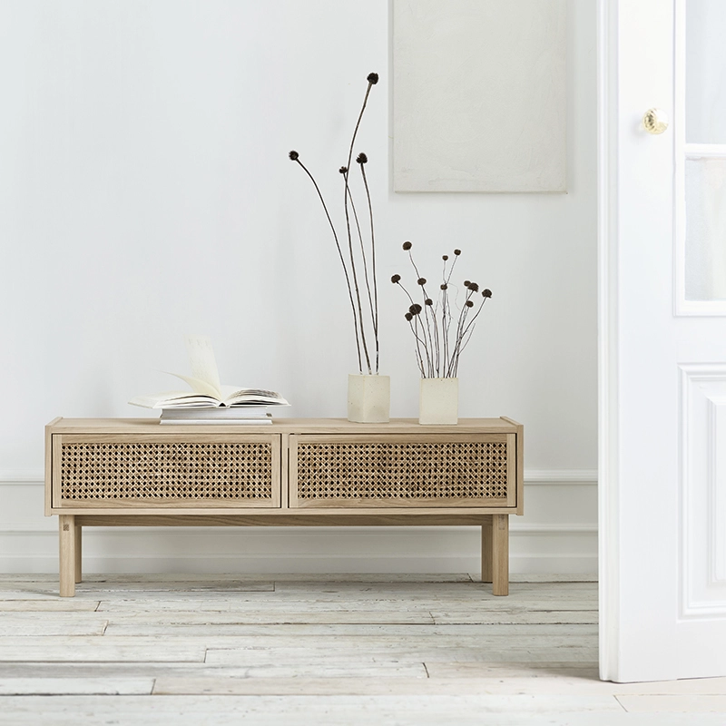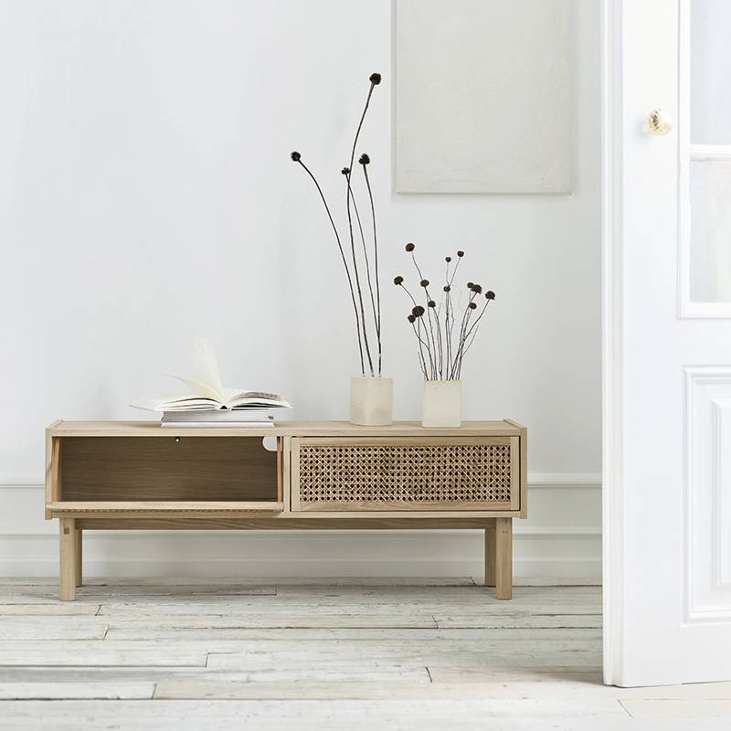 Edited by Bolia, Cana is a collection of storage units with a clean design, distinguished by its natural materials and handcrafted details. Each model in the Cana series has an ethereal, braided front that gives it a peaceful, light and iconic look. With Cana, Danish design duo Steffensen & Würtz have created a complete range of storage units including chests of drawers, wardrobes, bedside tables and sideboards. The designers were inspired by the quiet, characteristic atmosphere of Danish seaside hotels, where serenity and authenticity create a very special atmosphere. The Cana Bolia collection has a clean, transparent expression, perfect for a simple, minimalist ambience in any room of the house.