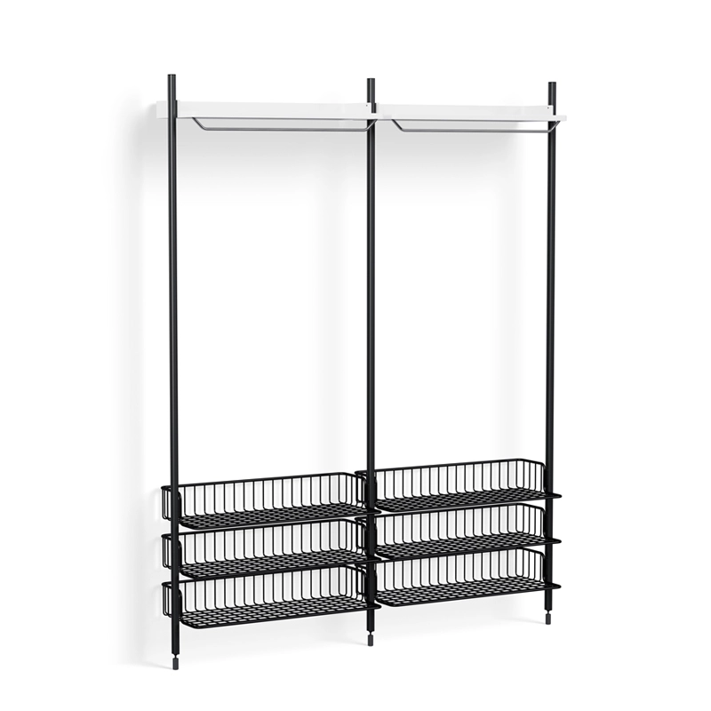 Designed by the famous designers Ronan & Erwan Bouroullec, Pier System is a multifunctional storage system, developed to adapt to modern living conditions. Delivered flat-packed and easy to assemble, reconfigure and recycle, Pier System's simple, flexible construction makes it ideal for storing and organising many different types of object. Made from aluminium and steel using the minimum of components needed for a complete storage system, Pier System is available in different colours and numerous configurations, which can be combined together. The elements of the configurations can be moved according to need or desire, to integrate the functions you want. Published by Hay, the Pier storage system finds its place in every room of the house, be it the living room, bedroom, hallway or study. It is also suitable for contract spaces. The 1022 configuration has two shelves with wardrobes and six steel wire shelves.