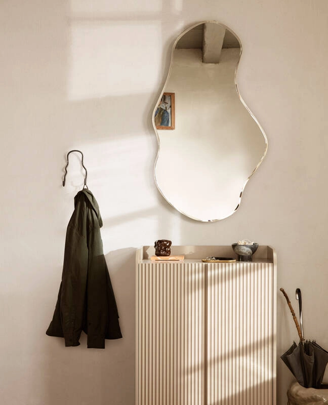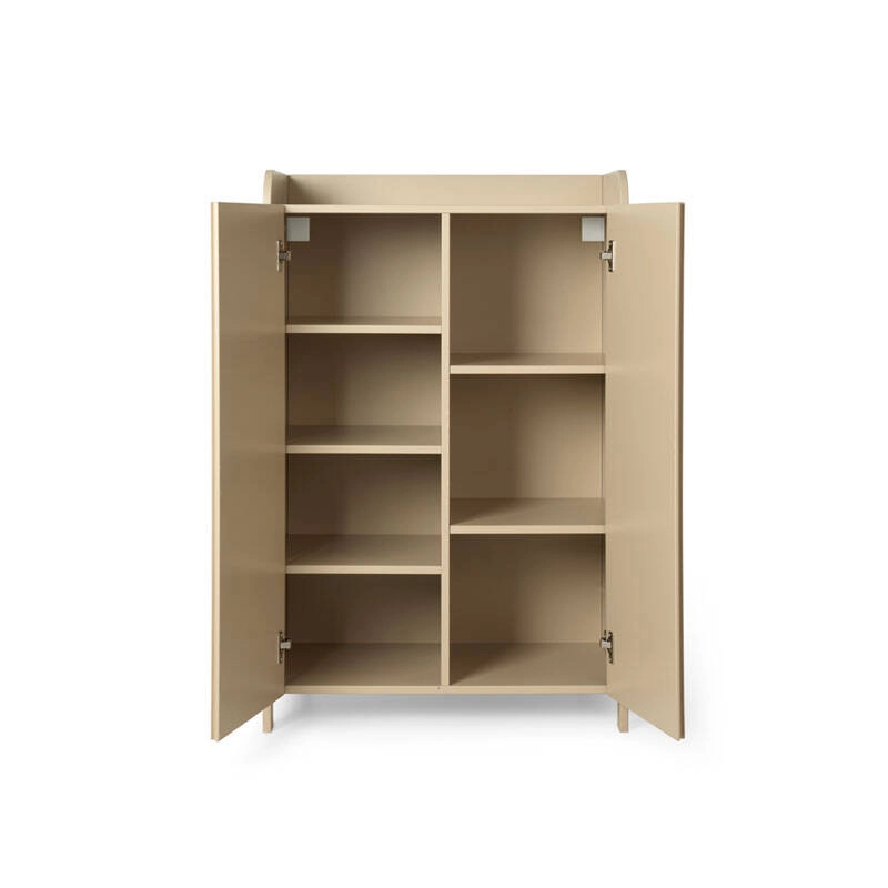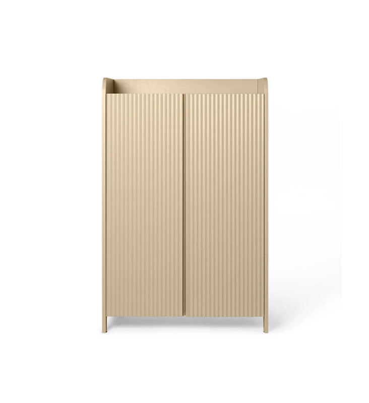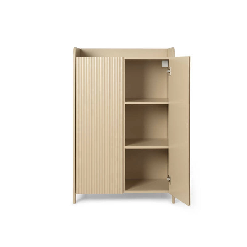 Designed by Trine Andersen for the brand Ferm Living, Sill offers a decorative and versatile functional storage solution. The name Sill comes from "groove", in reference to the carved grooves that adorn the doors of the Sill cabinet. This piece of furniture is at home anywhere in the home: in the nursery, hallway, bedroom or kitchen. The top of the cabinet has raised edges along three sides, giving you a surface for extra storage or as a display for your favourite items. As well as the scalloped doors, the rounded corners contribute to the playful expression that characterises the design of Sill. For safety reasons, the storage unit should be fixed to the wall.