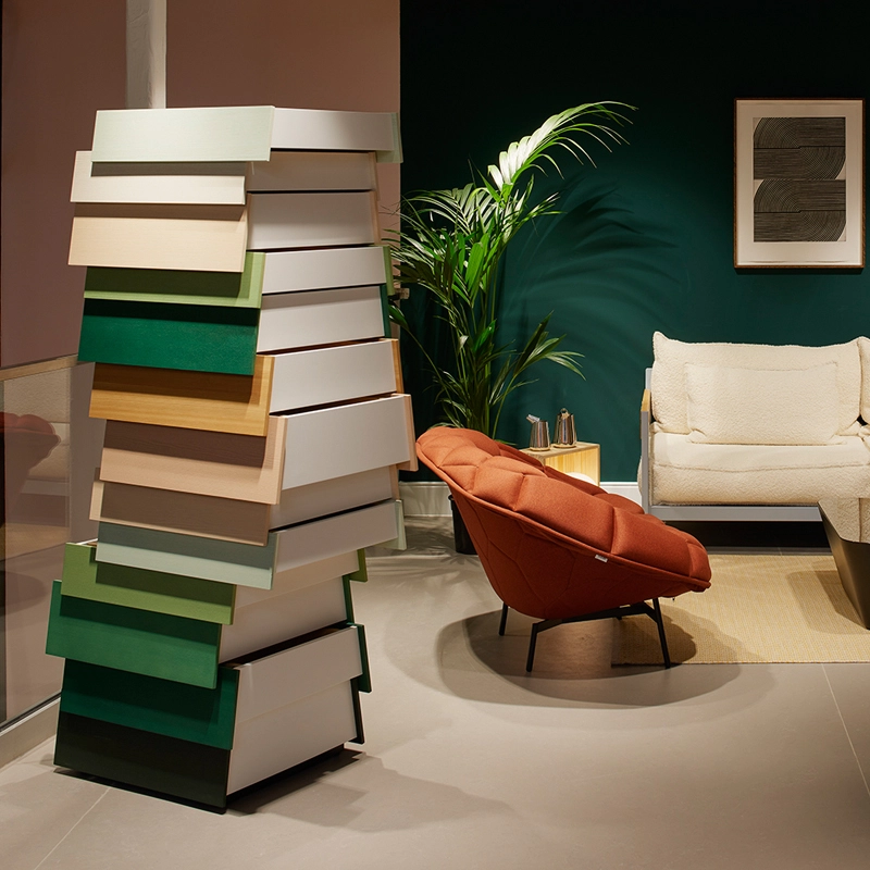 Stack is a storage collection designed by Raw Edges and Shay Alkalay for the Established and Sons brand. Defying the codes of a traditional chest of drawers, Stack consists of a combination of individual drawers that appear to be just stacked on top of each other. The drawers in Stack open in both directions, changing the silhouette of the storage unit and creating an irregular composition. Offered by Established & Sons, Stack is both a sculptural piece that can be enjoyed from every vantage point and a fully functional, highly practical storage unit. It is available in 8 or 13 drawer versions and comes in a range of cheerful colours.