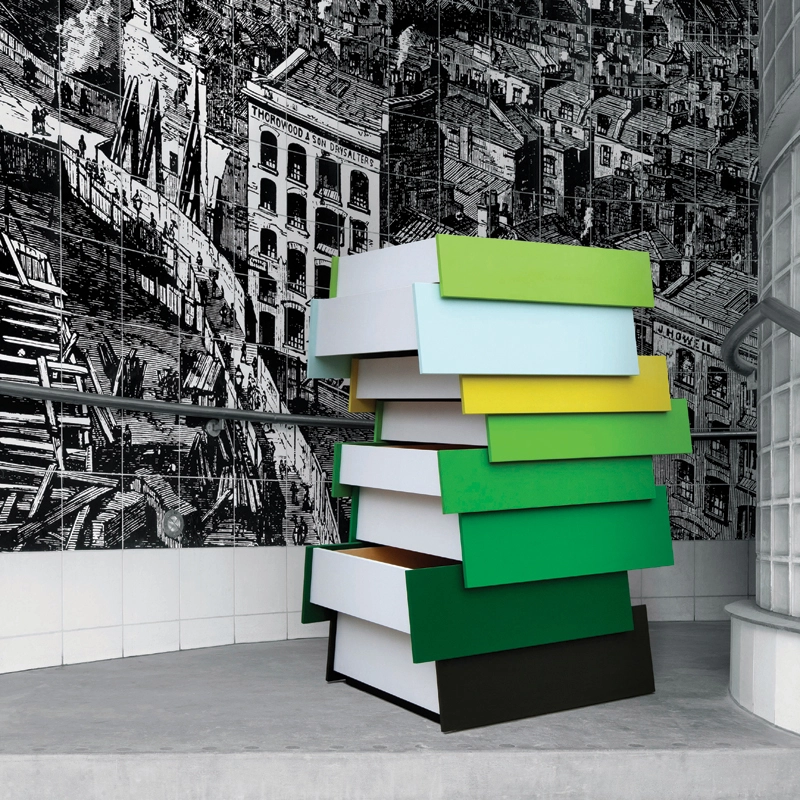 Stack is a storage collection designed by Raw Edges and Shay Alkalay for the Established and Sons brand. Defying the codes of a traditional chest of drawers, Stack consists of a combination of individual drawers that appear to be just stacked on top of each other. The drawers in Stack open in both directions, changing the silhouette of the storage unit and creating an irregular composition. Offered by Established & Sons, Stack is both a sculptural piece that can be enjoyed from every vantage point and a fully functional, highly practical storage unit. It is available in 8 or 13 drawer versions and comes in a range of cheerful colours.