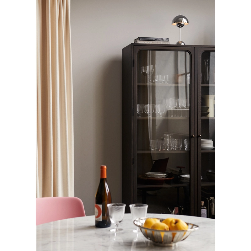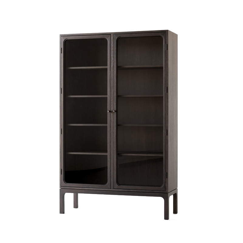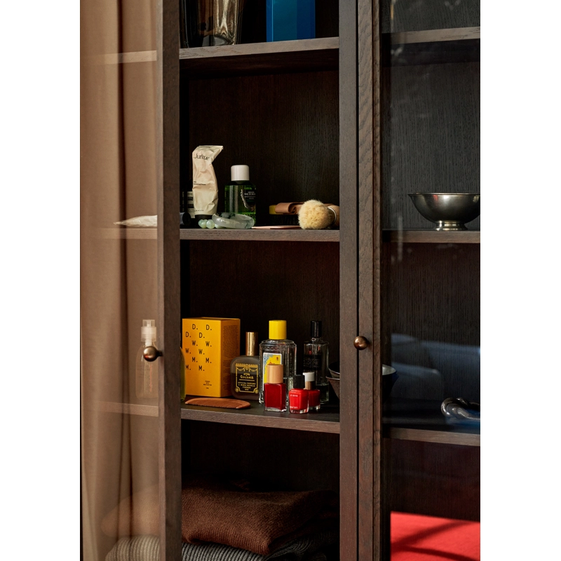 Edited by And Tradition, the Trace storage collection combines luxurious detailing with a sleek silhouette. The Trace storage unit, featuring an oak frame and glass doors, is the latest collaboration between And Tradition and Space Copenhagen. Its classic silhouette with a contemporary expression offers storage space and an elegant setting for displaying precious objects. The name 'Trace' refers to all the items we collect during our lives. The cabinet acts as an extension of these traces, showcasing these precious items in a setting that blends perfectly with any interior décor. The designers of the Trace collection describe the piece of furniture as elegant and understated, enhancing the objects placed within it rather than drawing attention to itself. The result is a timeless piece of storage furniture that blends effortlessly into any space. It's the discreet details that make it up that give Trace visual interest. Available in oak and dark stained oak finishes, the Trace furniture features subtle brass detailing to complement the refined craftsmanship and elegance of the cabinet. Made in Portugal using ancestral woodworking practices, the rangement Trace is made from FSC-certified material of controlled origin. The simplicity and versatility of Trace storage units make them perfect for displaying a collection of books, glassware or objects in any space.
