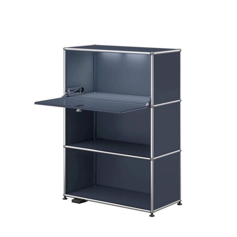 Created by architect Fritz Haller and visionary industrialist Paul Schärer, USM furniture has been made in Switzerland for over 50 years and is recognised the world over. The build quality of USM HALLER furniture and its timeless lines make it an essential design classic, equally at home in offices and the most beautiful interiors, whether classic or modern. Its modular design means that it can be upgraded over time as needs and desires change. The meuble Haller E M58 features a hinged door. The meuble Haller E M58 has a chrome-plated steel structure assembled by connecting balls, clad in powder-coated steel panels and mounted on height-adjustable glides. It also comes with a set of wall anchors and dimmable warm white lighting. Classic doors that don't require keys. (Secure on delivery, the doors unlock for the first time using a coin or a normal key)