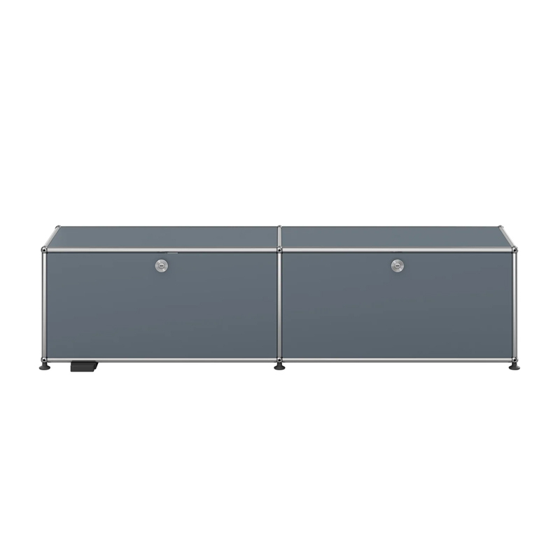 Created by architect Fritz Haller and visionary industrialist Paul Schärer, USM furniture has been made in Switzerland for over 50 years and is recognised the world over. The build quality of USM HALLER furniture and its timeless lines make it an essential design classic, equally at home in offices and the most beautiful interiors, whether classic or modern. Its modular design means that it can be upgraded over time as needs and desires change. The meuble Haller E M59 consists of two hinged doors, an intermediate shelf, and a cable management cut-out. The meuble Haller E M59 has a chrome-plated steel structure assembled by connecting balls, clad in powder-coated steel panels and mounted on height-adjustable glides. It also has variable intensity warm white lighting. Classic doors that don't require keys. (Secure on delivery, the doors unlock for the first time using a coin or a normal key)